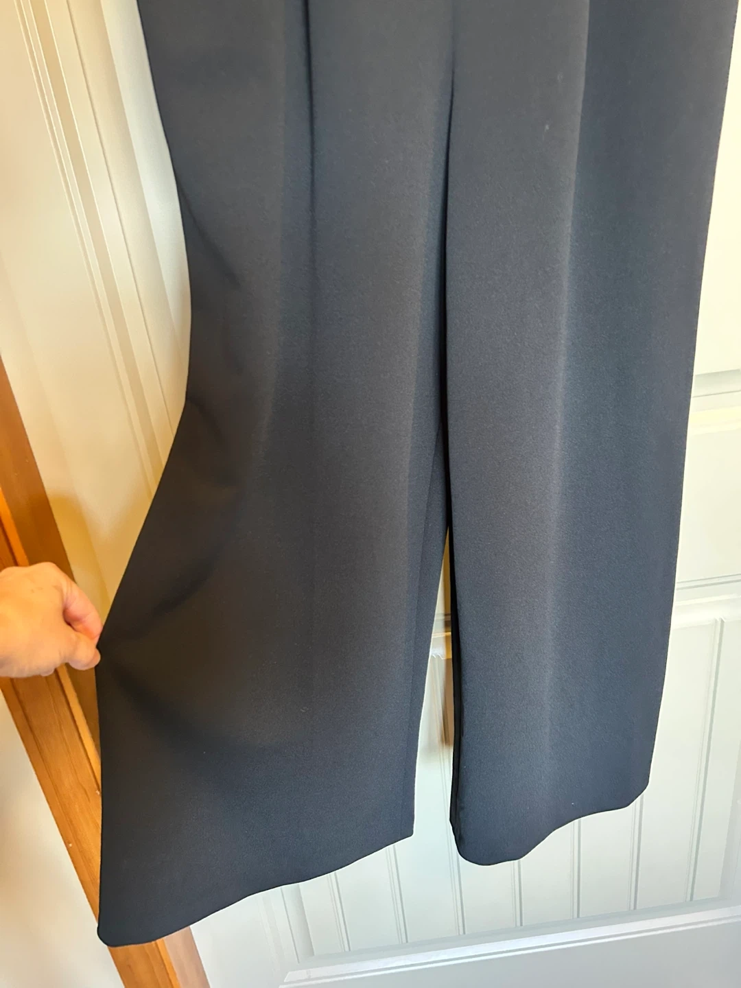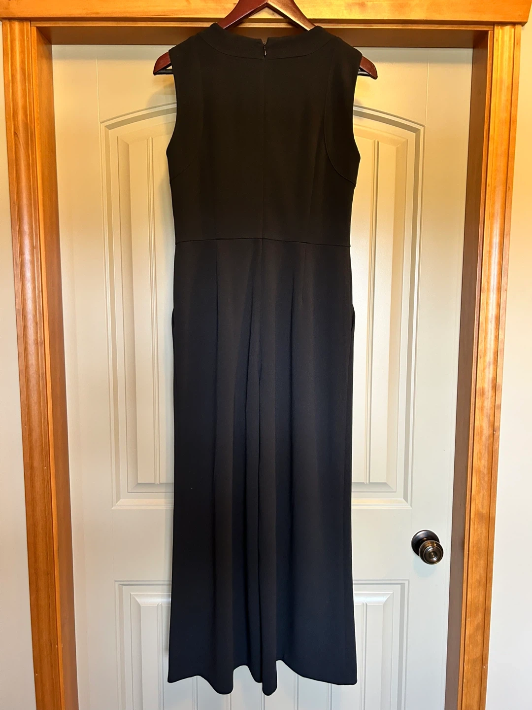 This Calvin Klein jumpsuit is black and sleeveless. It's a size 8 with wide legs. Perfect for a night out, business, or a formal event!
