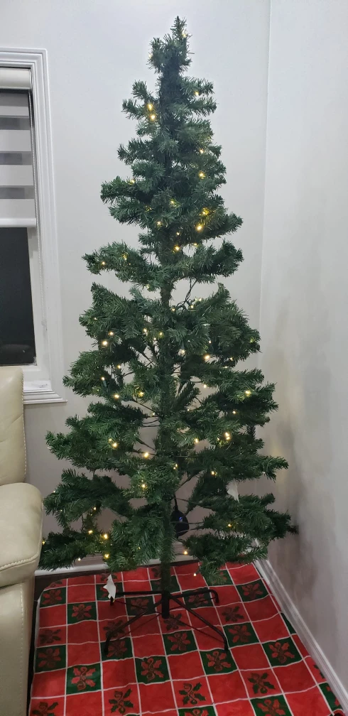 Selling a Holiday Time 7-ft Pre-Lit Sonoma Pine Tree. It has 200 LED lights and 550 tips. The tree height is 7 ft (2.13 m) with a 40-inch (101.6 cm) diameter.