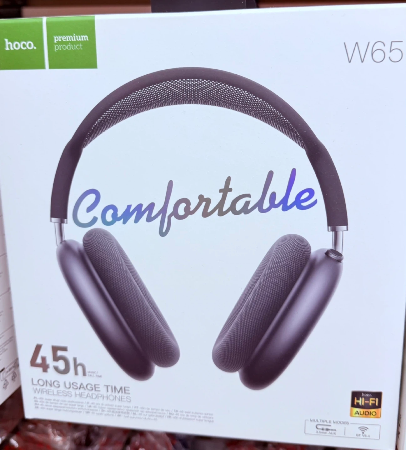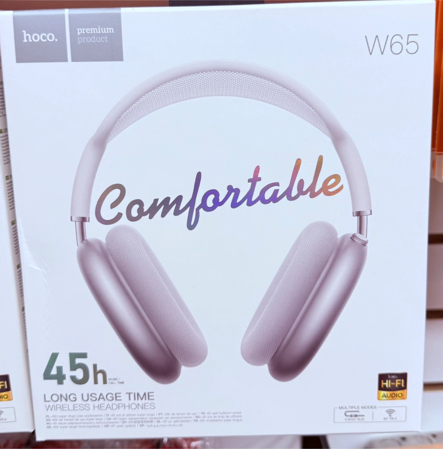 These hoco. W65 wireless headphones offer long usage time with 45 hours of playback. They support Hi-Fi audio and multiple modes. Comfortable to wear for extended listening sessions!