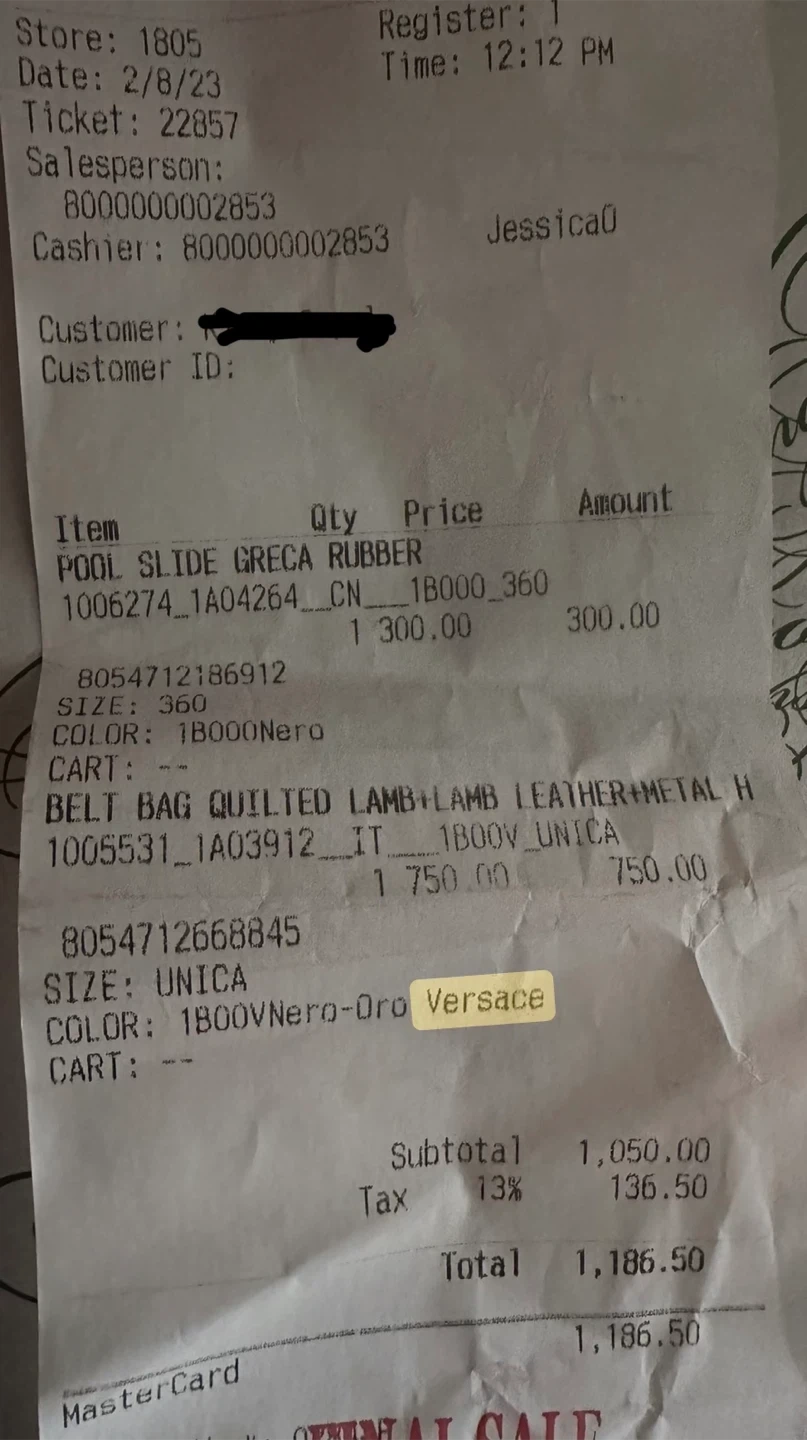 • Includes original receipt showing authenticity (personal info blocked)