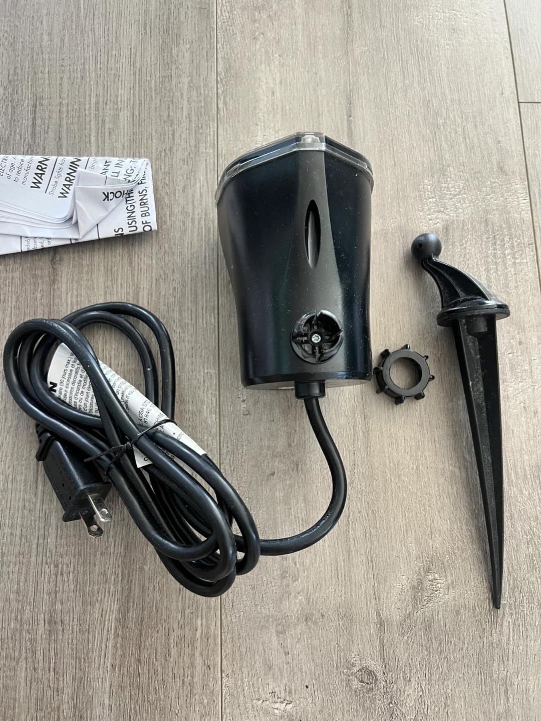 Projects up to 15 ft (4.6 m). This multicolor engine light swirl show is for indoor or outdoor use. Includes the projection light, cord, and stake.