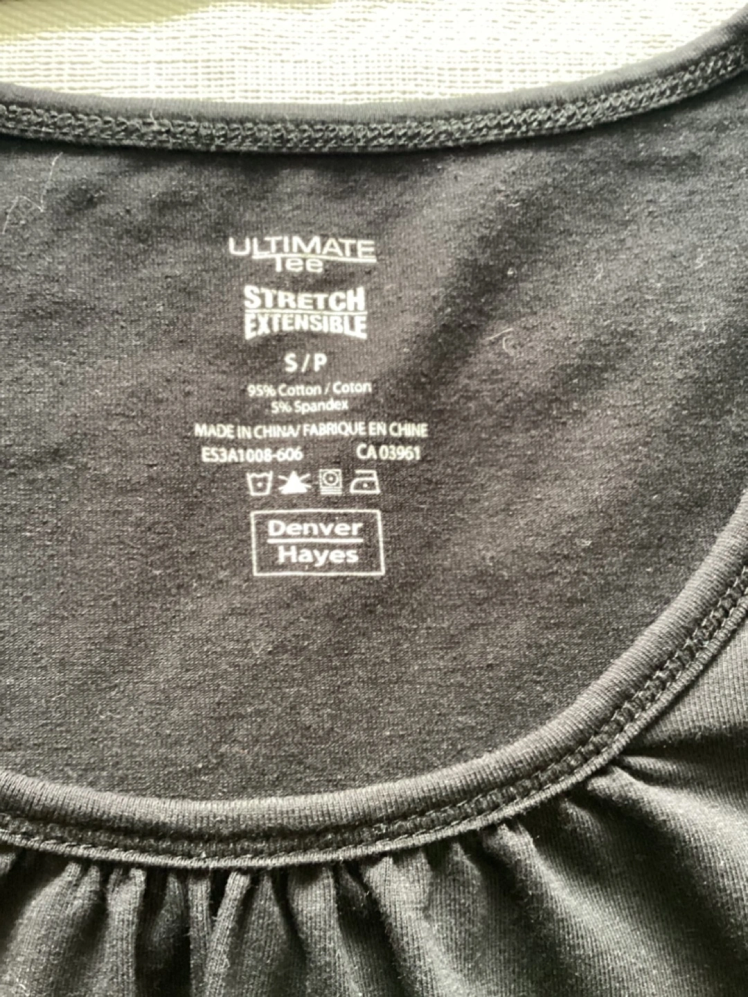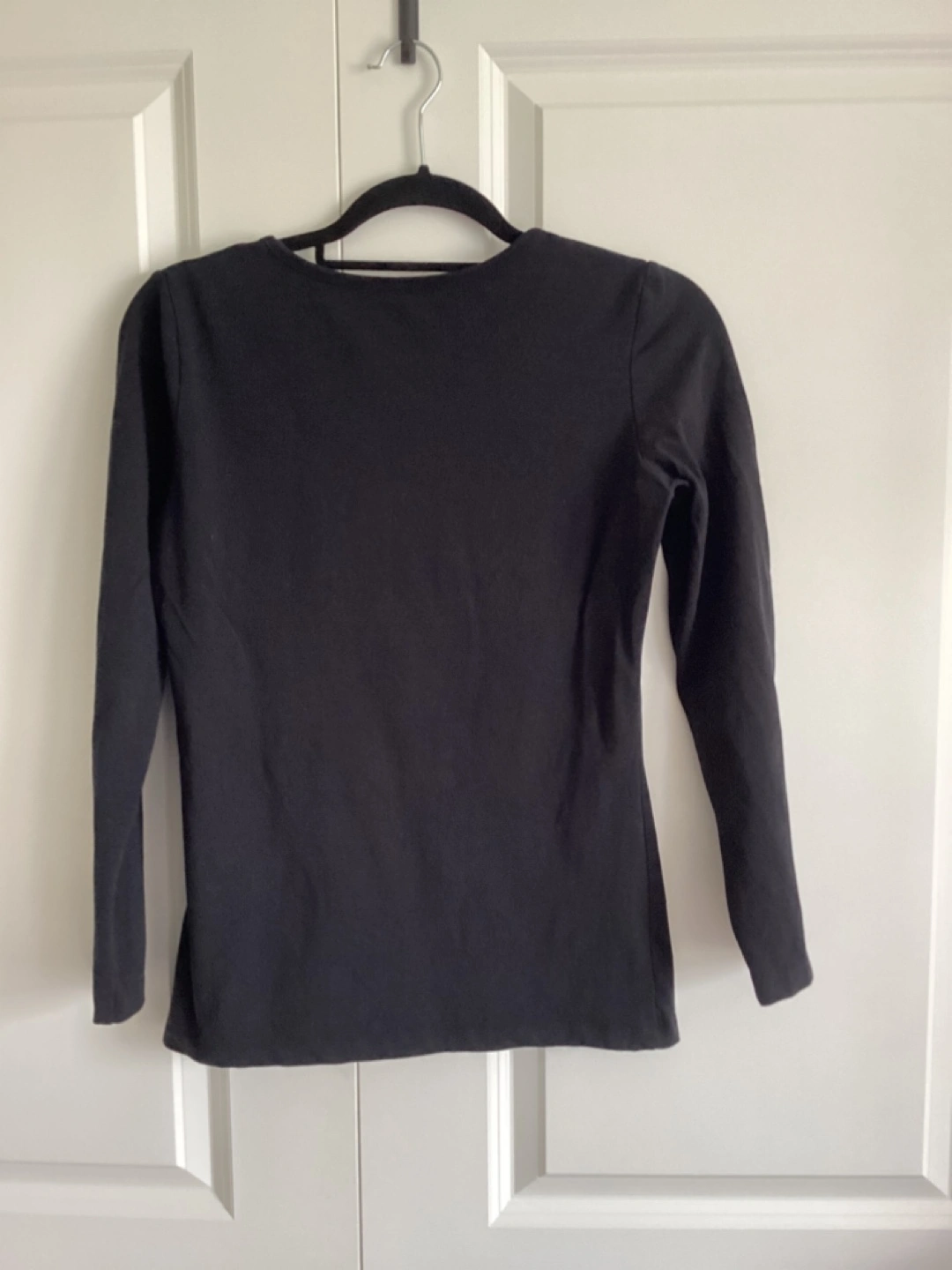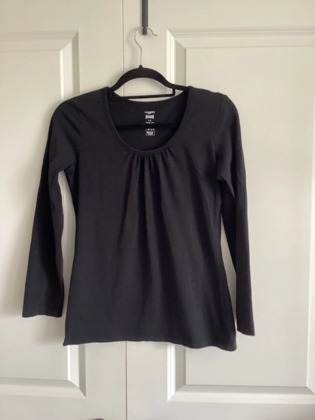 Denver Hayes Black Long Sleeve T-Shirt, interesting ruching detail at front neckline, Denver Hayes is a Marks brand, no major signs of wear, Size Small, $5 firm.