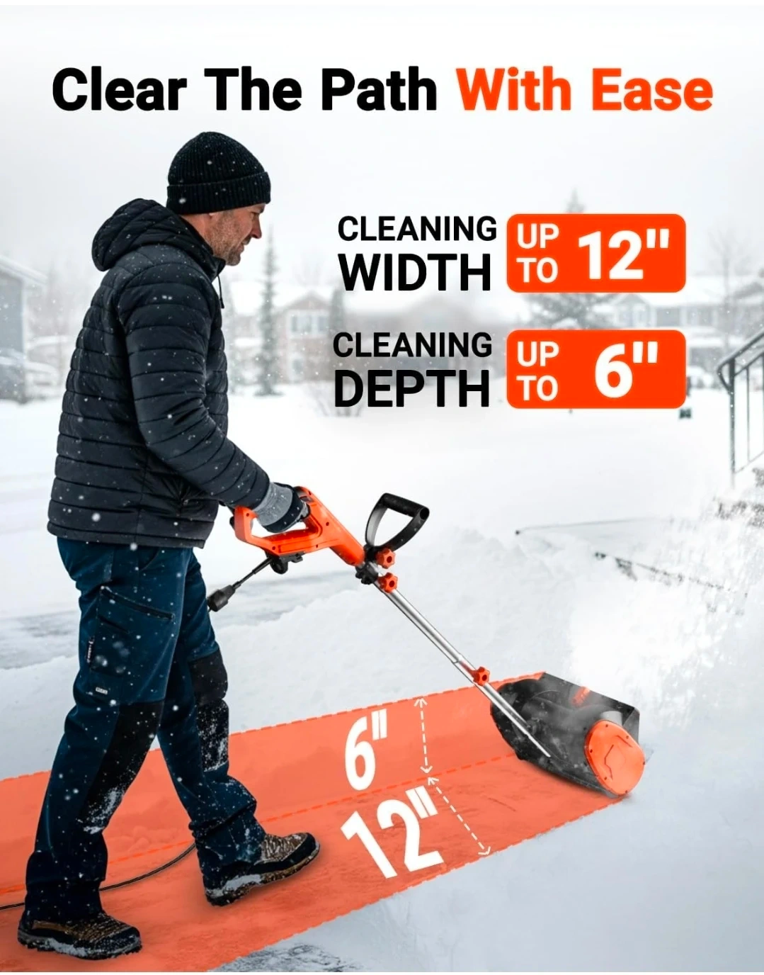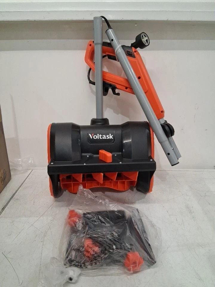 I'm selling a Voltask 12-Inch Corded Snow Blower in amazing condition. This electric snow shovel is lightweight and easy to handle, making snow removal a breeze. The snow blower is equipped with a powerful 10-amp motor and can throw snow up to 20 feet away. This snow blower can clear snow up to 12 inches wide and is optimal for a snow depth of 6 inches, making it ideal for driveways, steps, patios, decks, sidewalks and pathways.