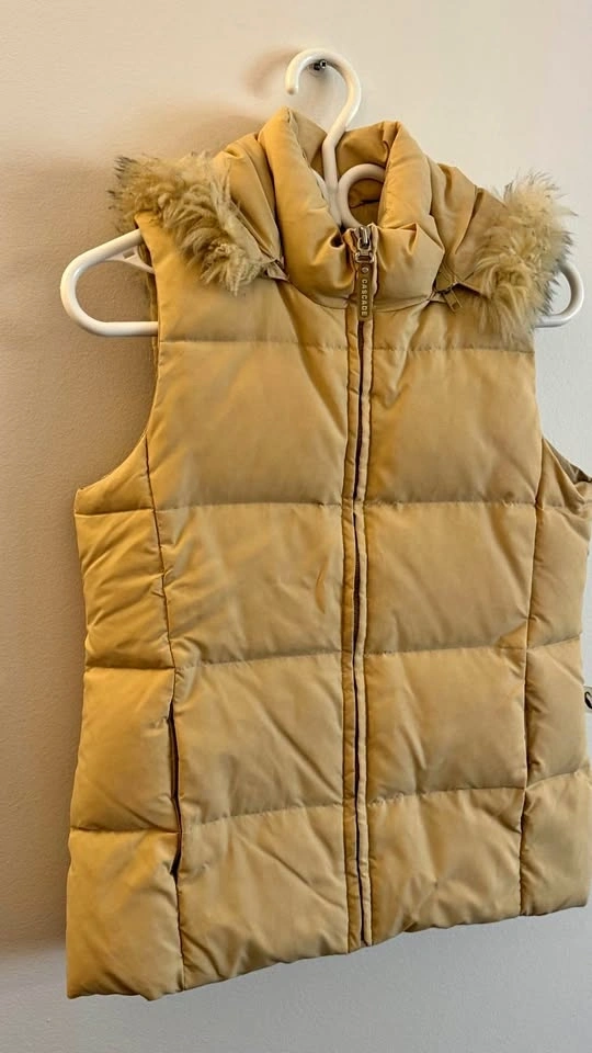 Buy & SellCascade Tan Hooded Puffer Vest with Faux Fur TrimCascade Tan Hooded Puffer Vest with Faux Fur Trim$25Cozy Cascade puffer vest. Tan color. Has a hood with faux fur trim. Zipper closure and pockets. Great for layering! Size: M.WHERE TO MEETCheck LocationView MapSELLERverifiedTalaOutremont600 reviews0 chats·0 favorites·2 viewsSEND CHAT TO SELLERHi Tala! I’m interested in your listing.Hi Tala! I’m interested in your listing.Get the Karrot app to chatSign In to chat