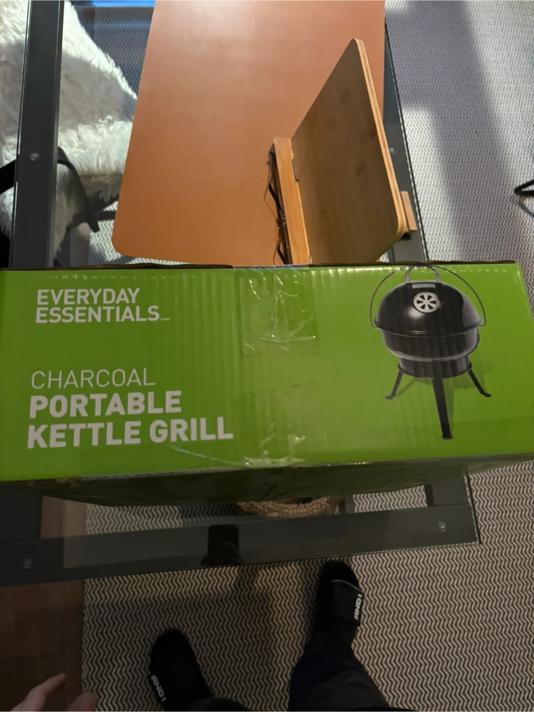 Selling an Everyday Essentials charcoal portable kettle grill! It's still in its box and ready for your next cookout. This grill is perfect for picnics, camping, and outdoor gatherings. It can cook up to 7 burgers at a time! The assembled product measures 40 cm x 40 cm x 52 cm (15.7 po x 15.7 po x 20.5 po)
