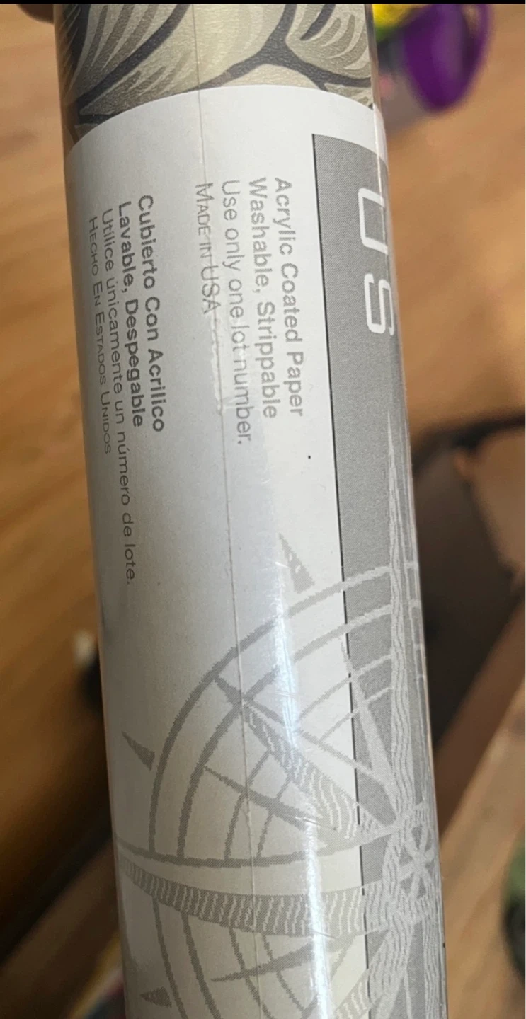 Acrylic coated paper wallpaper. It's washable and strippable. Made in USA. Roll size is 52.1 cm x 10.0 m, covering 5.2 m².