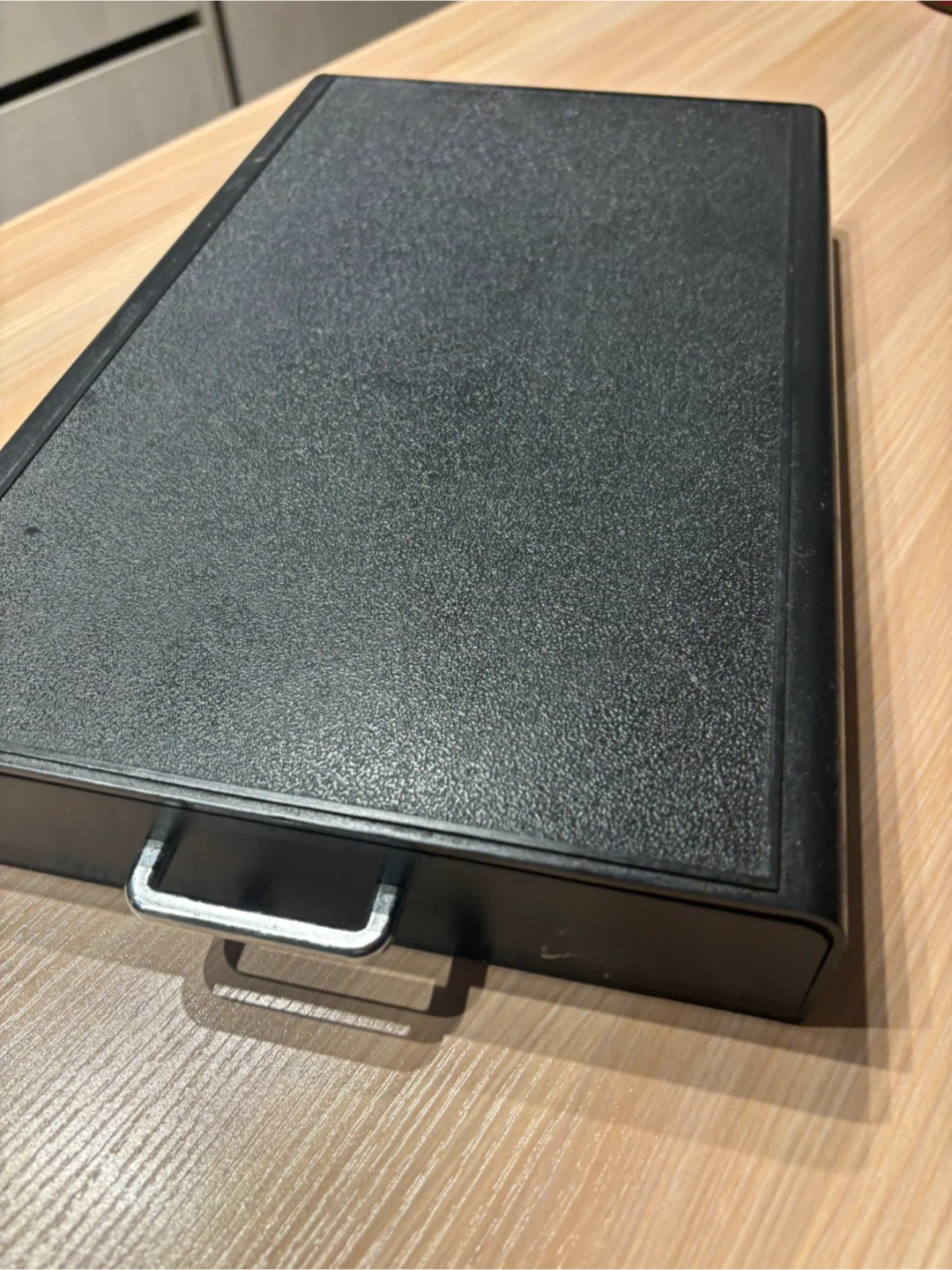 This is a black drawer organizer with five slots. It's great for keeping original nespresso coffee pods tidy in the drawer. The textured plastic design is durable and practical.