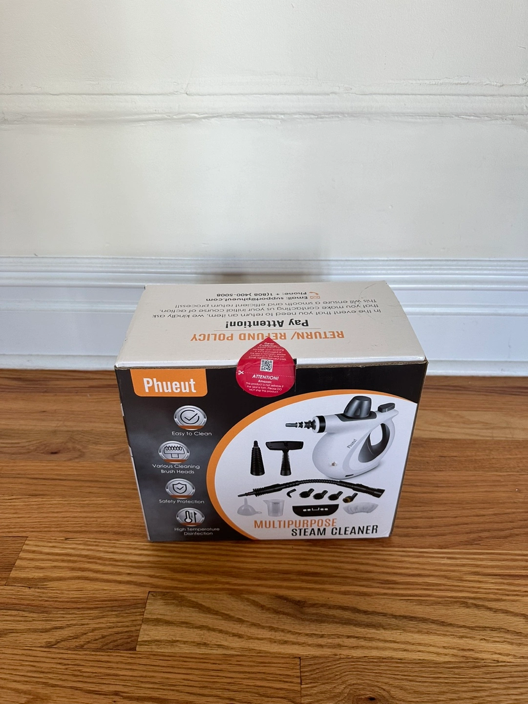 New in the box. Handheld Multi-Surface Natural Steam Cleaner with all the accessory set included. No flaws, reselling a non-wanted gift.