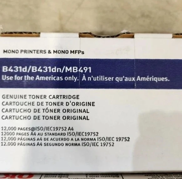 Genuine OKI toner cartridges for mono printers and MFPs. These are for use in the Americas only. Each cartridge yields 12,000 pages at ISO/IEC 19752 standards. Seven cartridges are available.