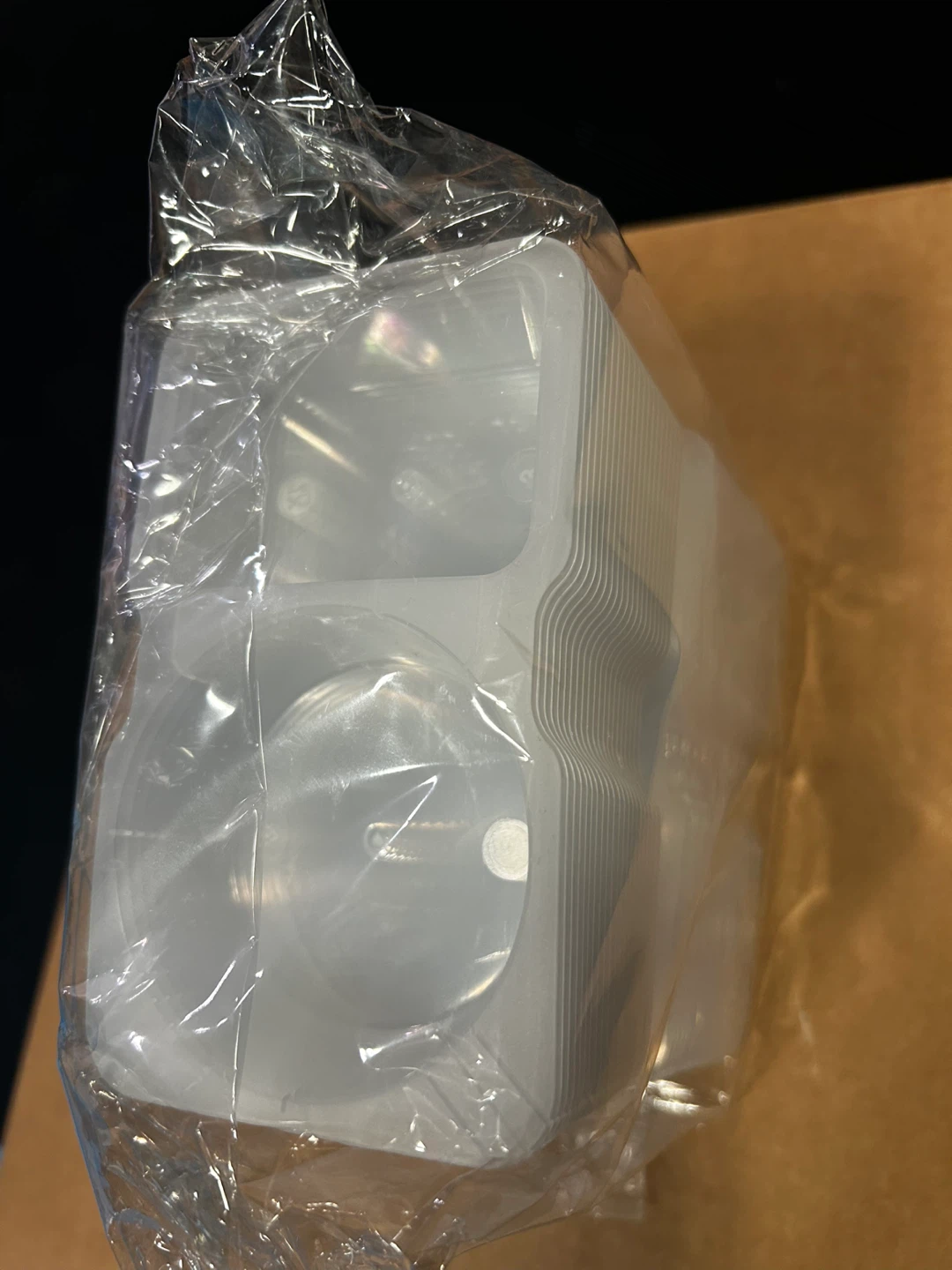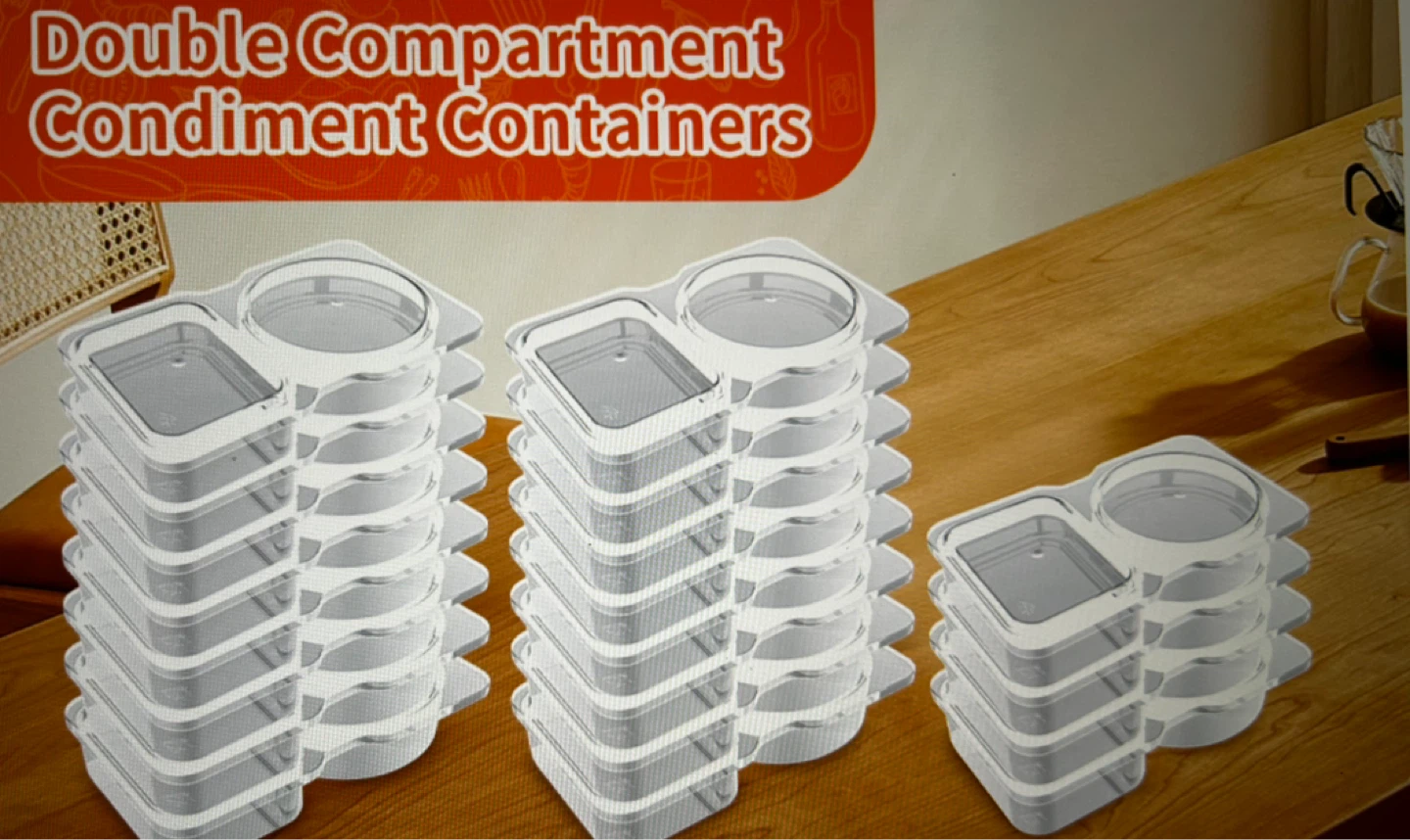 These clear plastic containers are great for packing sauces and dressings. They feature double compartments to keep different items separate. Suitable for refrigeration and freezing!