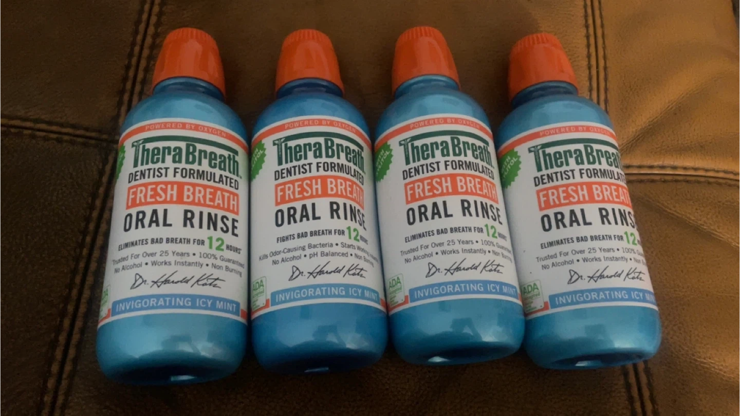 TheraBreath dentist-formulated Fresh Breath Oral Rinse. This invigorating icy mint formula fights bad breath for 12 hours. It's alcohol-free and non-burning. Expiration date is 06/2026.