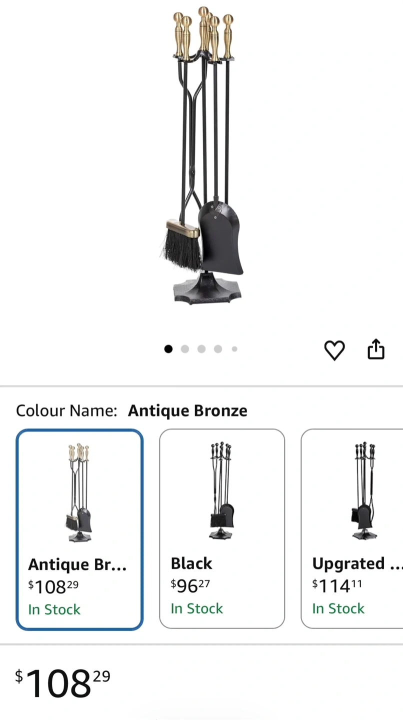 5-Piece Fireplace Tool Set with Gold Accents