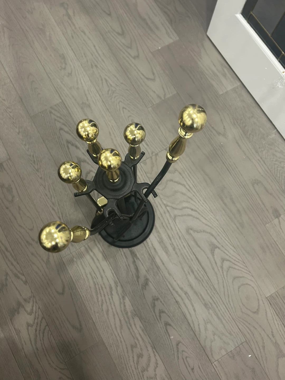 5-Piece Fireplace Tool Set with Gold Accents