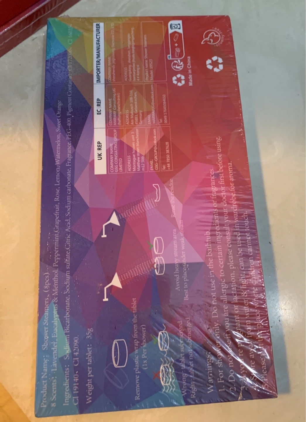 This box contains 8 shower steamers, each weighing 35g. They're designed for aromatherapy and a soothing experience. Scents include Lavender, Eucalyptus & Mint, Peppermint, Grapefruit, Rose, Lemon, Watermelon, and Sweet Orange.