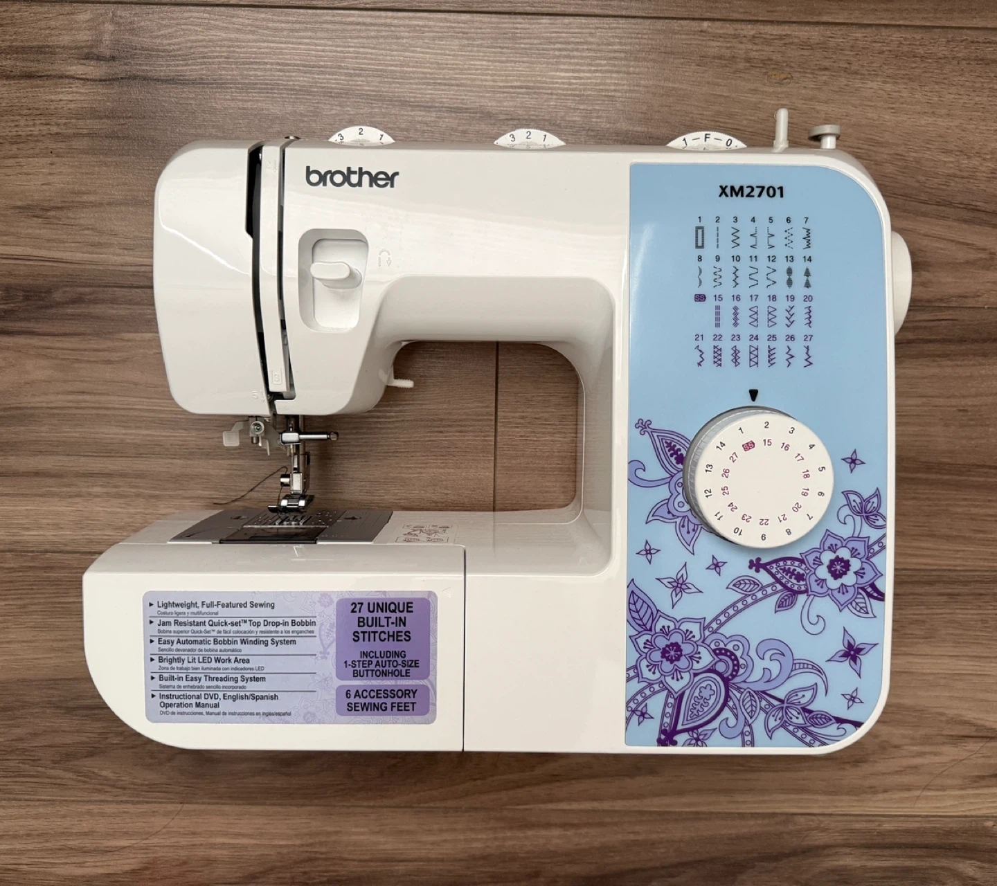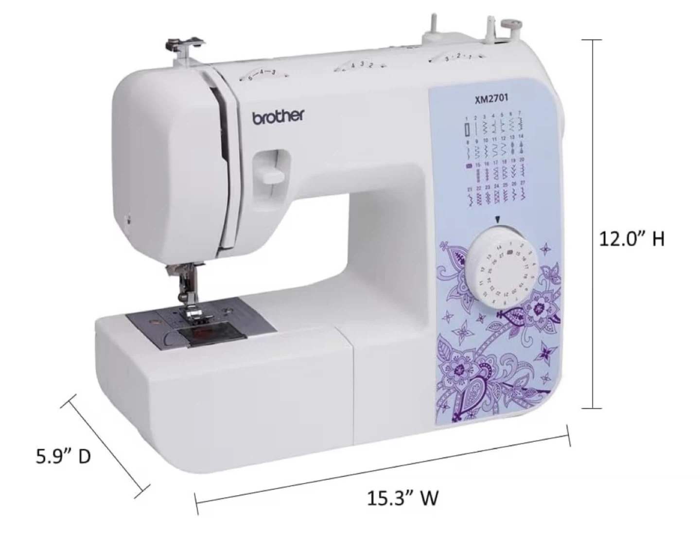 Brother XM2701 Lightweight, Full-Featured Sewing Machine with 27 Stitches, 1-Step Auto-Size Buttonholer, 6 Sewing Feet, and Instructional DVD