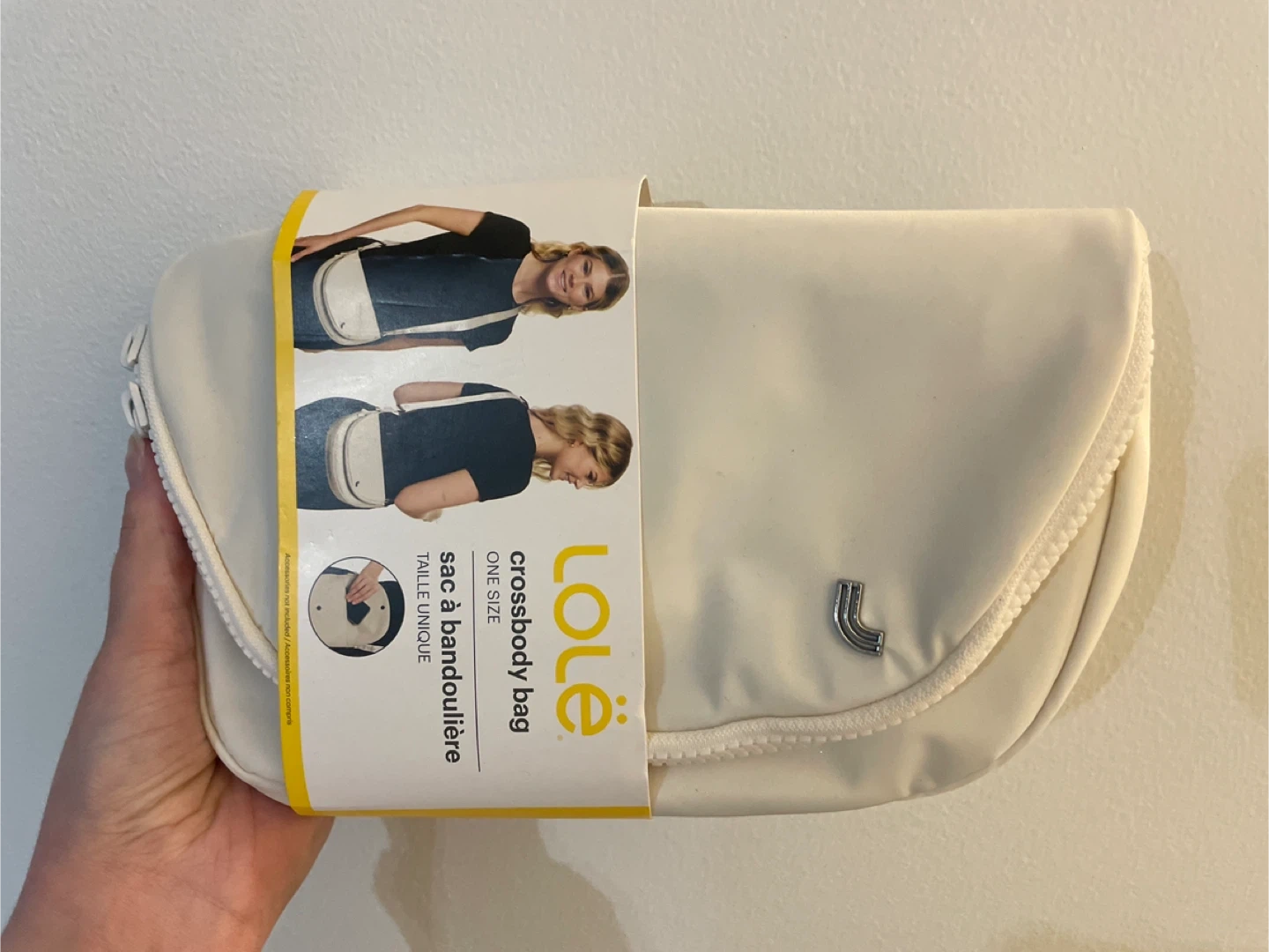 This Lole crossbody bag is a versatile cream colour and one size fits all. It's perfect for everyday use. The bag comes with a zippered closure for security.