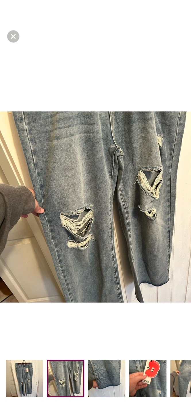 Cider bRand. Straight baggy leg distressed jeans. Light wash denim. Size xl. Brand new with tags