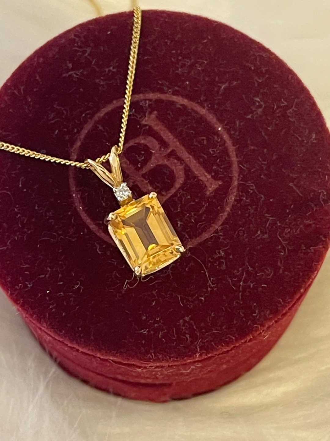 Exquisite Vintage Citrine Pendant, celebrated for its vibrant yellow hue, is a highly coveted gemstone often associated with prosperity and positivity. Emerald-cut citrine pendants, meticulously set in 14K yellow gold, exude a timeless and sophisticated aesthetic. The subtle addition of a diamond accent imbues the piece with refined luxury. These pendants are highly prized by collectors for their classic design, citrine's inherent beauty, and the perceived value of gold and diamonds. Featuring a citrine of approximately like 2 carat weight with excellent clarity grading, the quality of the gold is matched by the presence of additional gemstones. In excellent condition and meticulously preserved! This pendant will be accompanied by a new 10K solid yellow gold chain, 19” in length.