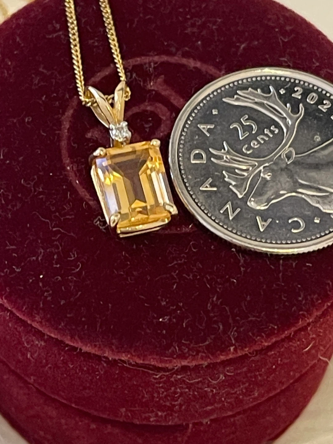 RARE- VINTAGE 14K Gold Citrine 2crt w/ diamond + New 10k chain