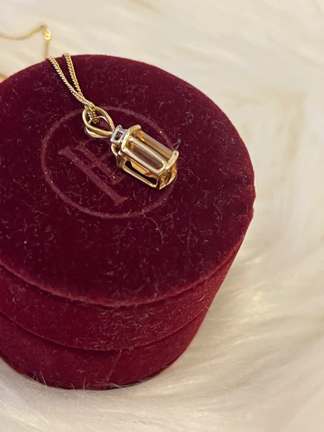 RARE- VINTAGE 14K Gold Citrine 2crt w/ diamond + New 10k chain