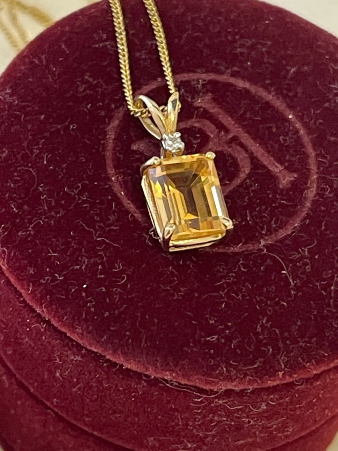 Exquisite Vintage Citrine Pendant, celebrated for its vibrant yellow hue, is a highly coveted gemstone often associated with prosperity and positivity. Emerald-cut citrine pendants, meticulously set in 14K yellow gold, exude a timeless and sophisticated aesthetic. The subtle addition of a diamond accent imbues the piece with refined luxury. These pendants are highly prized by collectors for their classic design, citrine's inherent beauty, and the perceived value of gold and diamonds. Featuring a citrine of approximately like 2 carat weight with excellent clarity grading, the quality of the gold is matched by the presence of additional gemstones. In excellent condition and meticulously preserved! This pendant will be accompanied by a new 10K solid yellow gold chain, 19” in length.