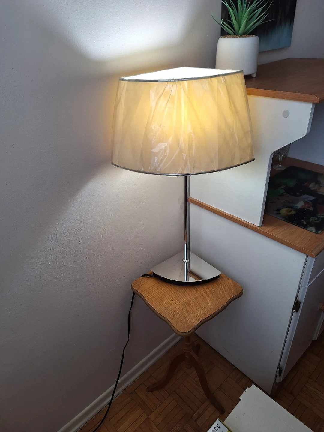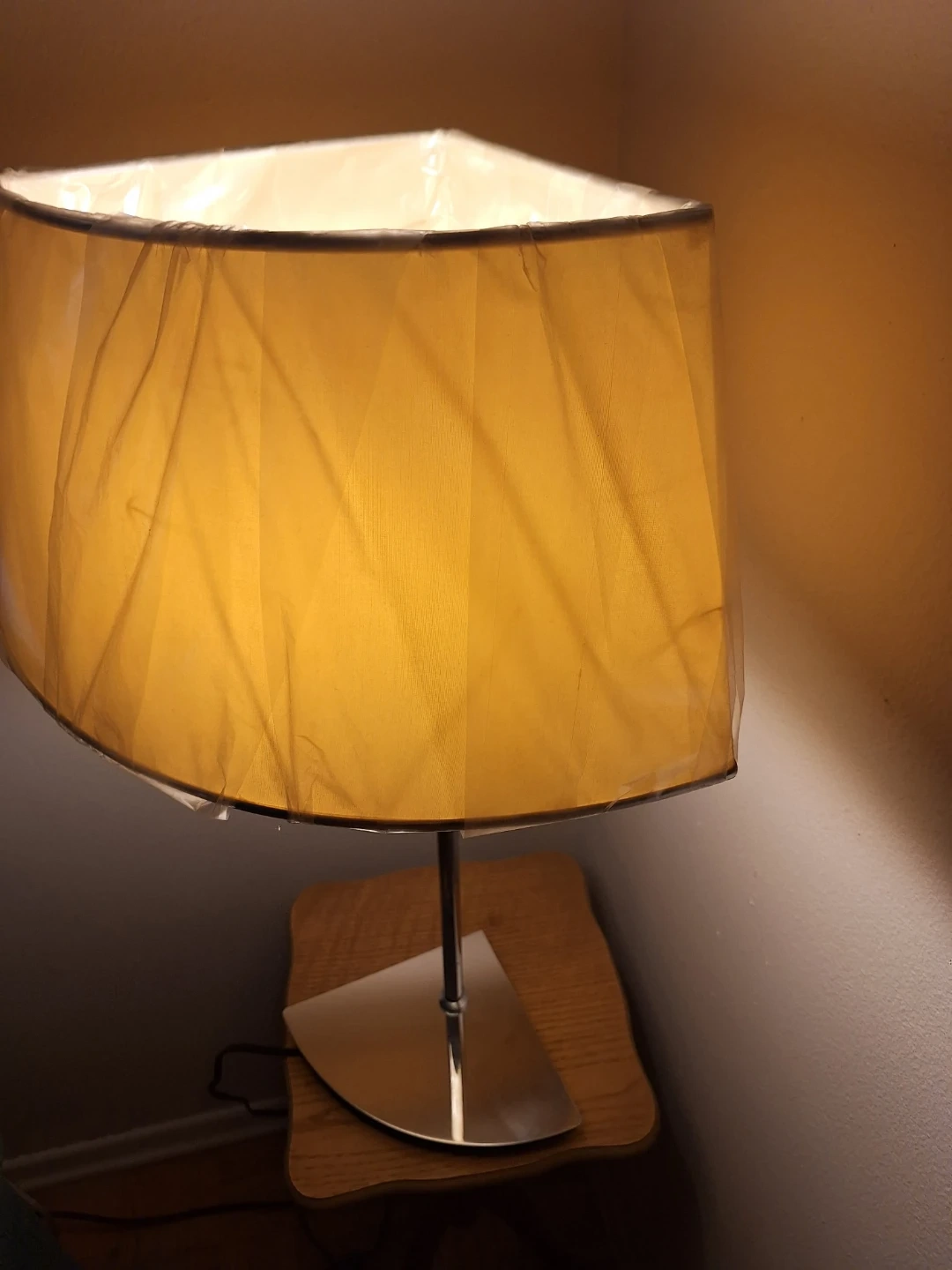 Attractive ! use for any decor pie shape lamp shade & base silver steel lamp with beige lamp shade switch on cord shade 8'' length 16"width full length of lamp 26"