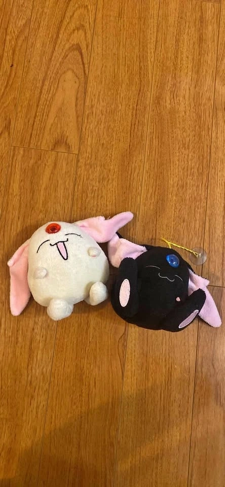 Set of 2 Mokona Modoki rabbit spirit plushies from Tsubasa Chronicles (Soel white and Larg black).