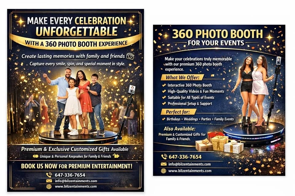 Create lasting memories with your family and friends. Capture every smile, spin, and special moment in style. Perfect for celebrations & gatherings. Fun, interactive & unforgettable experience. Ideal for birthdays, parties, weddings & family events. We also provide premium & exclusive customized gifts.