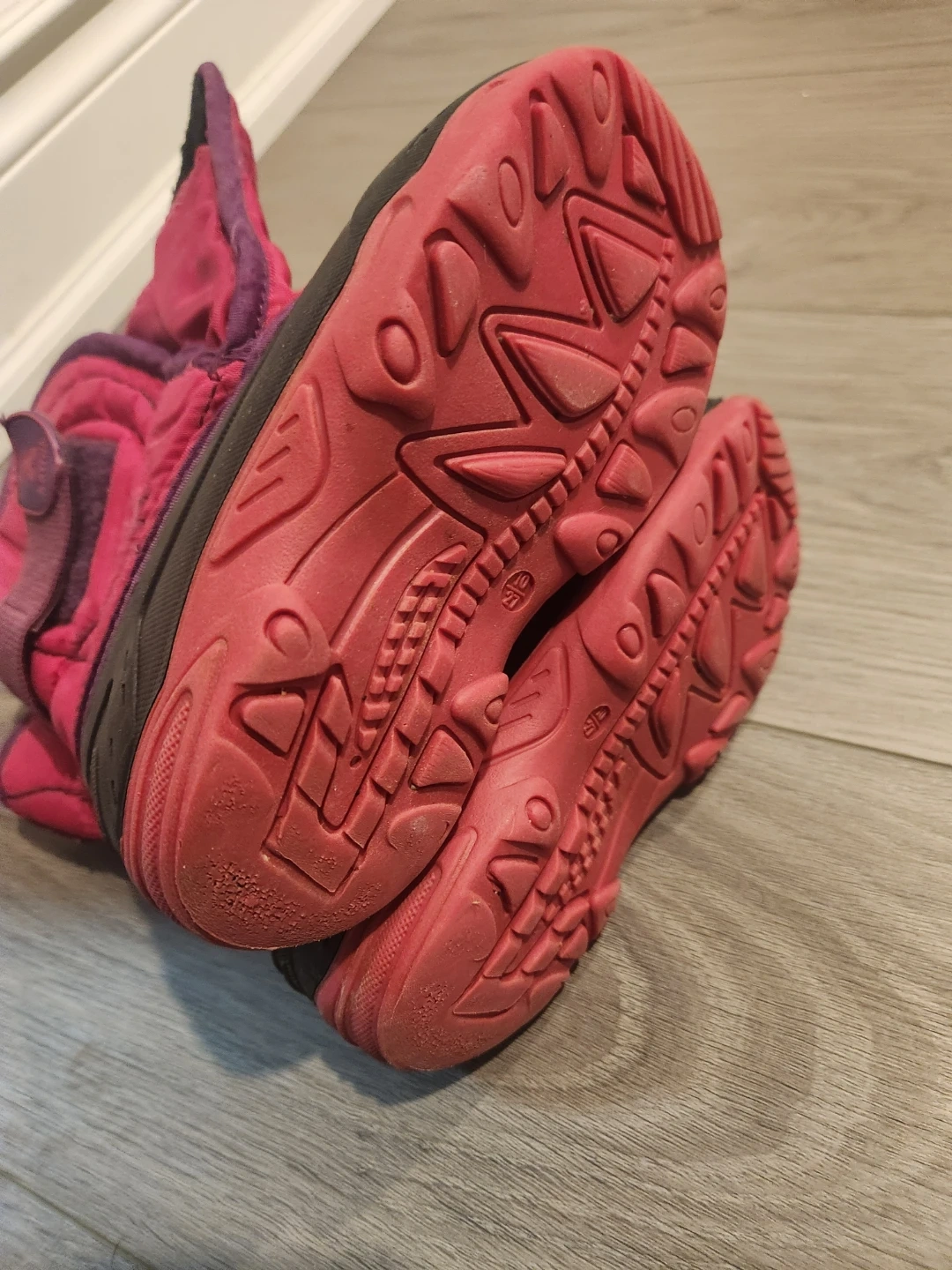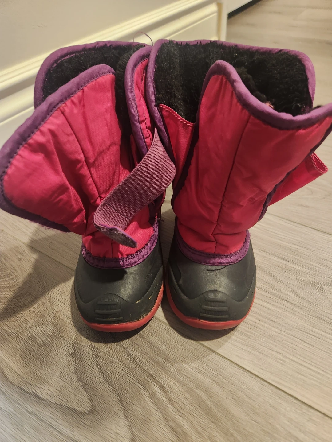 Keep your little one warm this winter with these Kamik snow boots! They're a vibrant pink and purple, perfect for adding a pop of colour to those snowy days. The boots are in great condition and ready for some fun in the snow! Size 9.