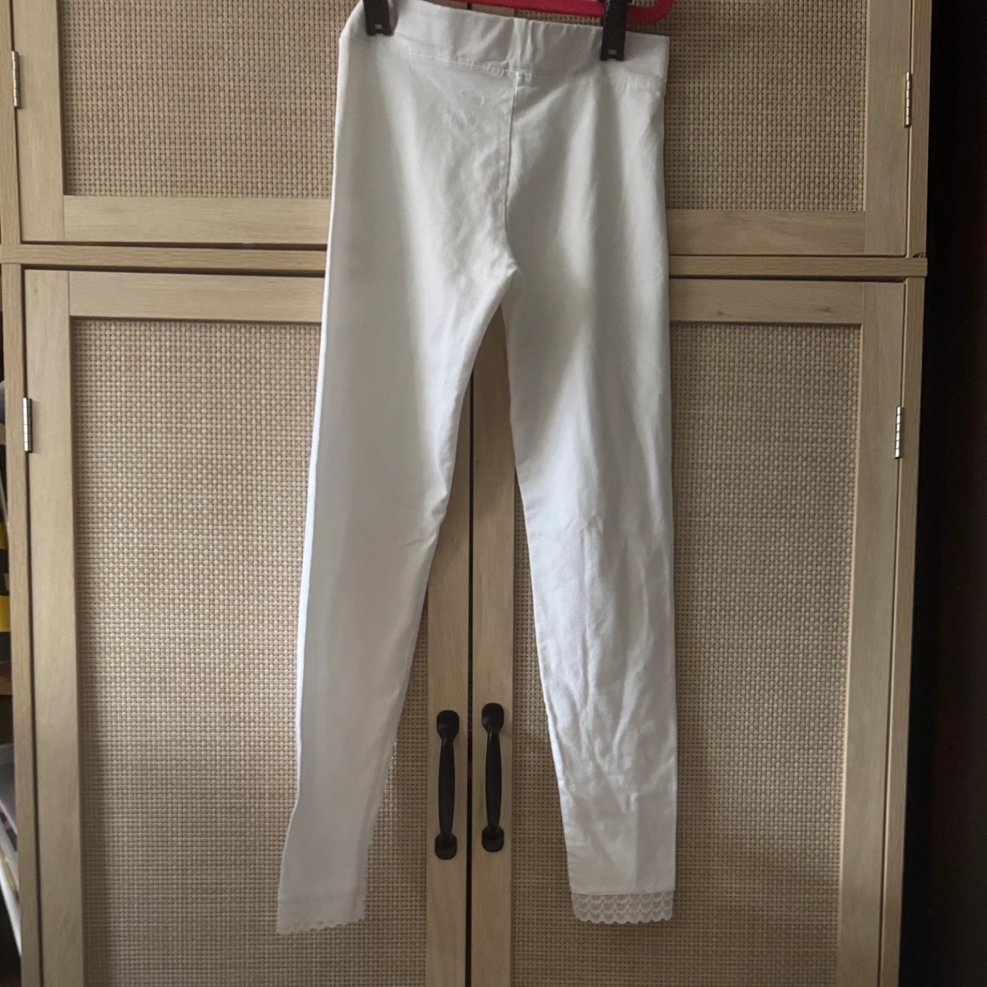 Soft White Leggings with lace ankle trim Size 9/10