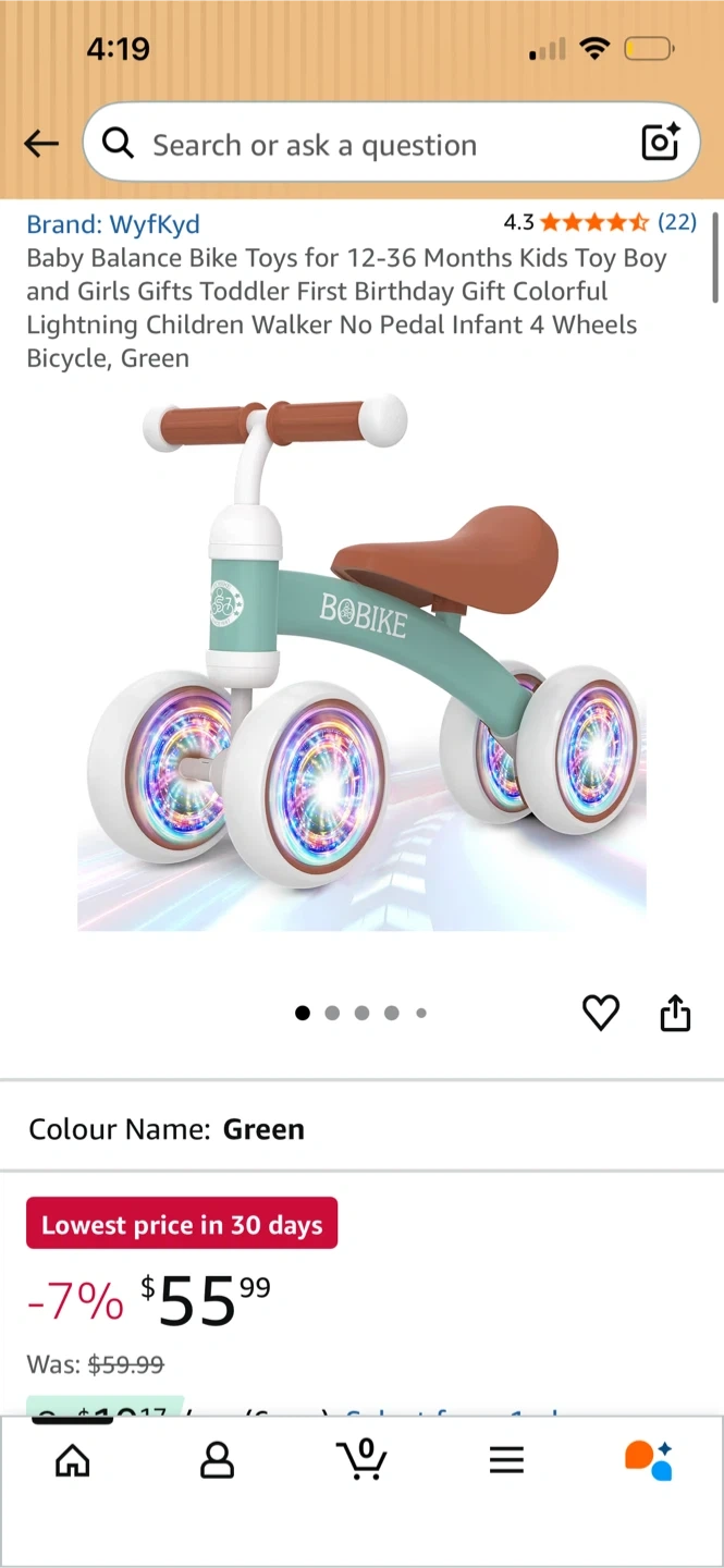 Buy & SellBaby Balance Bike ToyBaby Balance Bike Toy$45This is a baby balance bike toy. It comes with an instruction manual. Suitable for toddlers 12-36 months.ConditionNewAge6 months-5 yearsWHERE TO MEETCheck LocationView MapSELLEREsraHyde Park100 reviews0 chats·0 favorites·5 viewsSEND CHAT TO SELLERHi Esra! I’m interested in your listing.Hi Esra! I’m interested in your listing.Get the Karrot app to chatSign In to chat