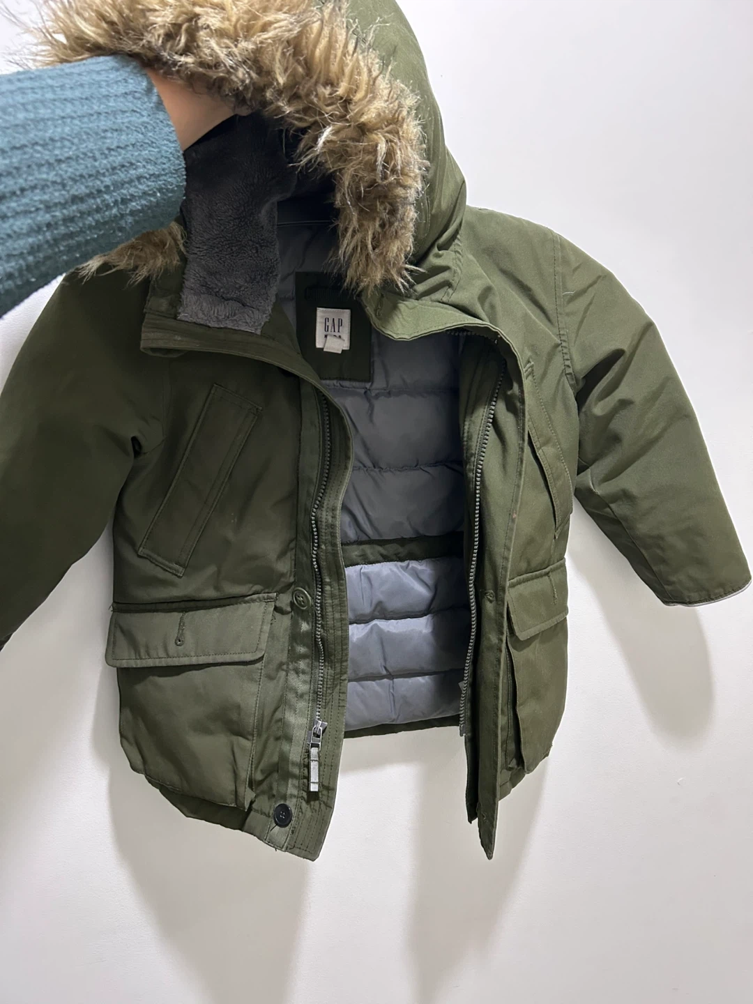 Buy & SellGAP Kids Green Winter Parka JacketGAP Kids Green Winter Parka Jacket$14This is a GAP Kids green winter parka jacket. It's designed for warmth with a faux-fur lined hood. It has multiple pockets and a full zipper closure.ConditionGoodAge3-5 yearsWHERE TO MEETCheck LocationView MapSELLERverifiedWhitneyYonge and Lawrence1217 reviews0 chats·1 favorites·26 viewsSEND CHAT TO SELLERHi Whitney! I’m interested in your listing.Hi Whitney! I’m interested in your listing.Get the Karrot app to chatSign In to chat
