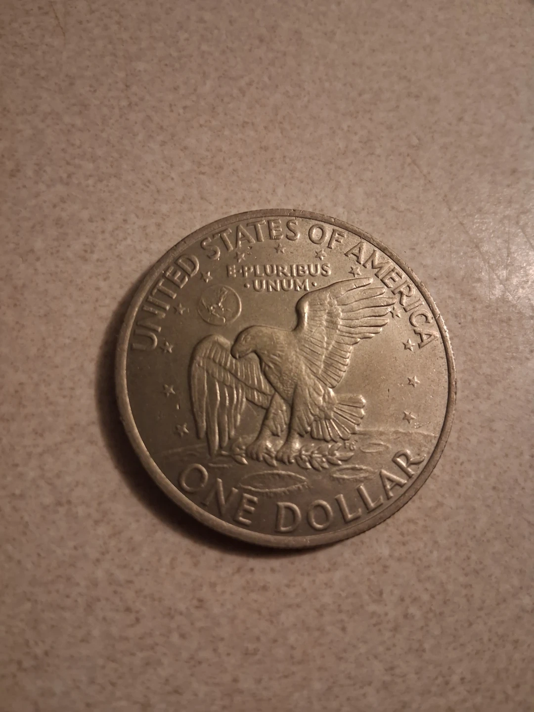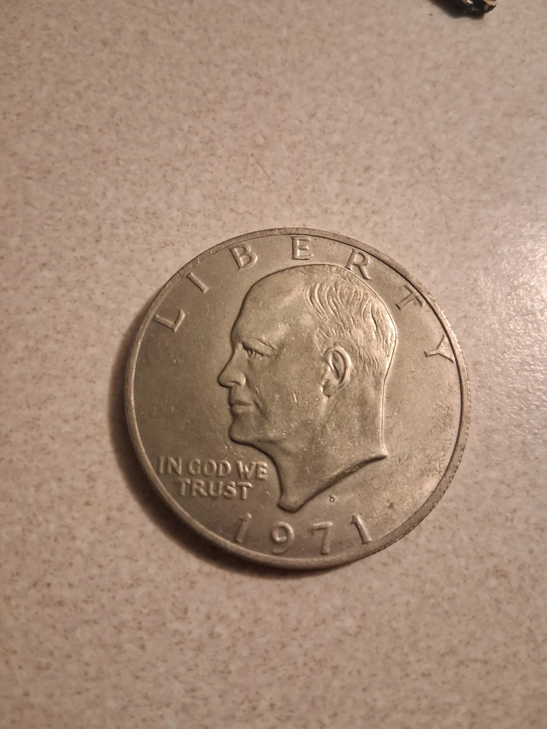 This is a 1971 Eisenhower dollar coin from the United States of America. It features President Eisenhower on the obverse and the Presidential Coat of Arms on the reverse. This coin is made of copper-nickel. It's a piece of American history.