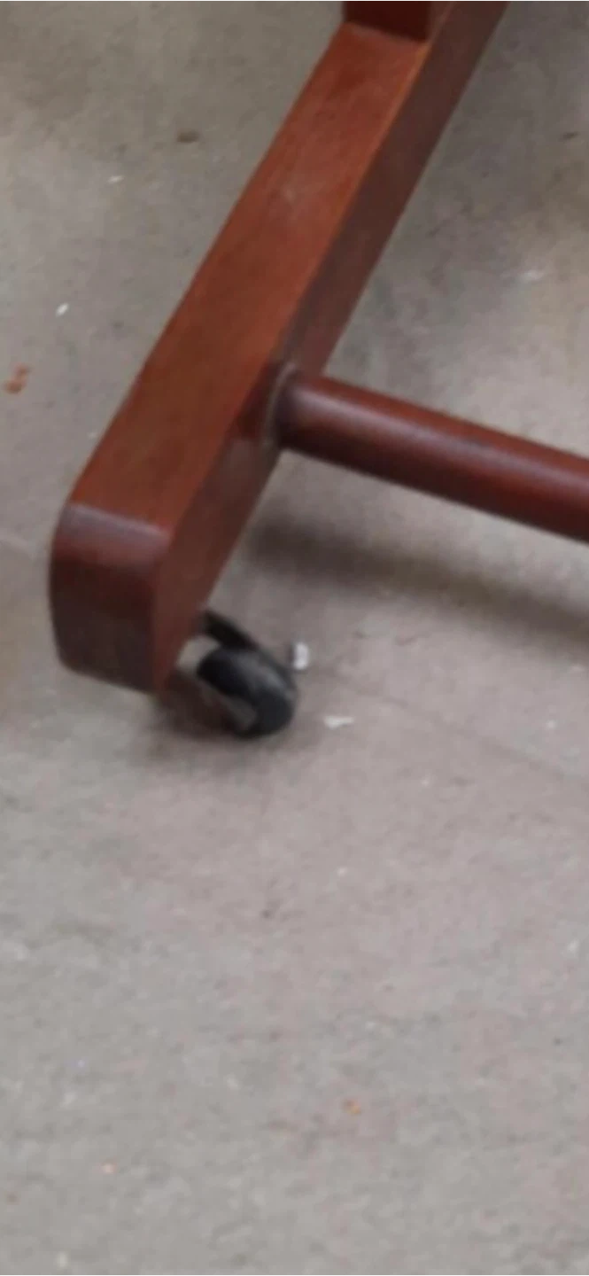 This freestanding garment rack is mounted on four wheels for easy mobility. It's crafted from rich, finished wood. Perfect for keeping suits and attire organized.
