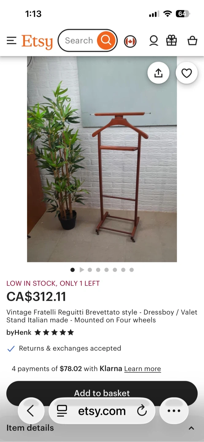 Vintage Fratelli Reguitti Italian made dressboy / valet stand.