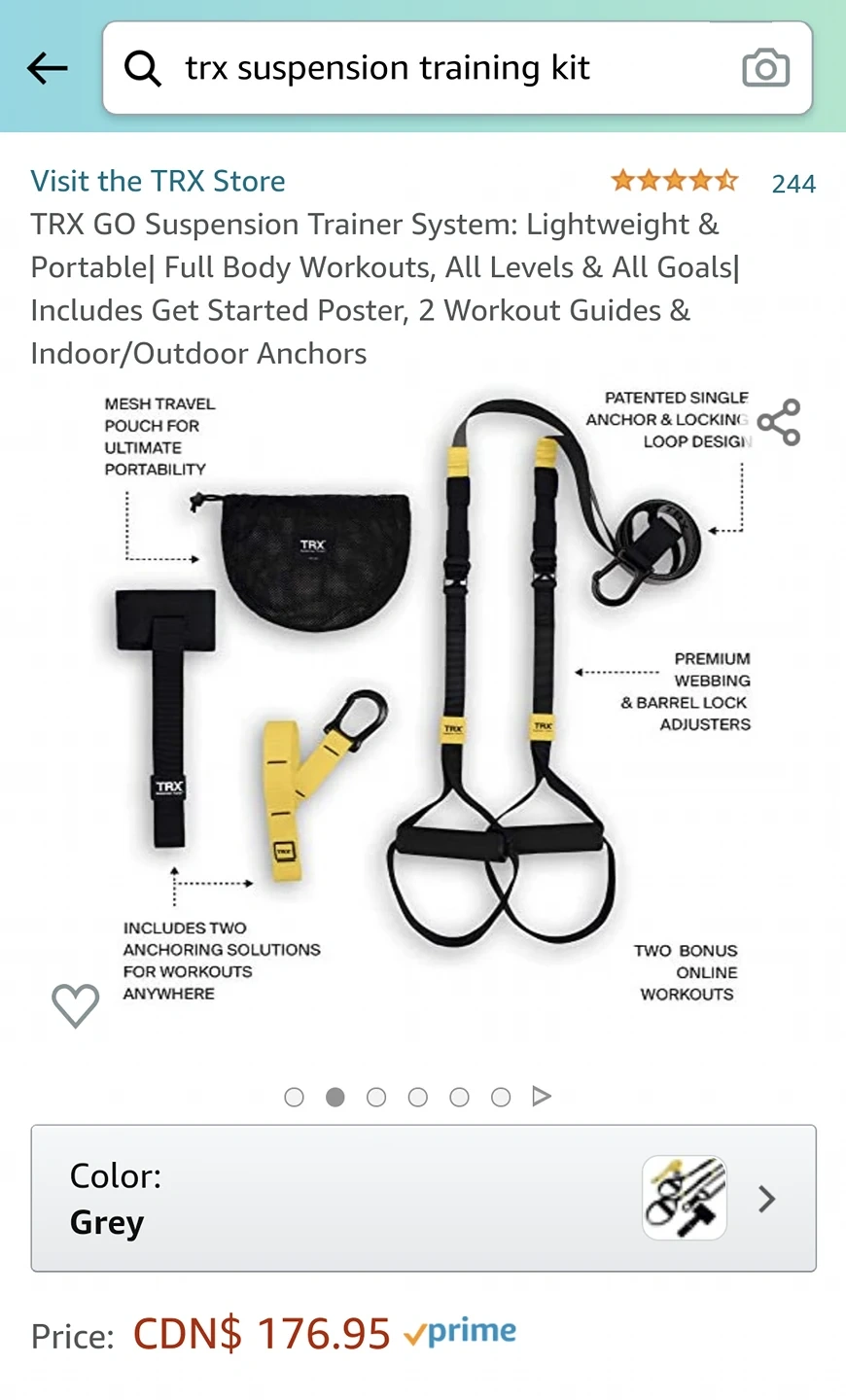 Brand new, unused TRX GO Suspension kit. Can be used outdoors or indoors (can use the door anchor for indoor use without permanent installation), and comes with mesh bag for quick packing up on the go.
