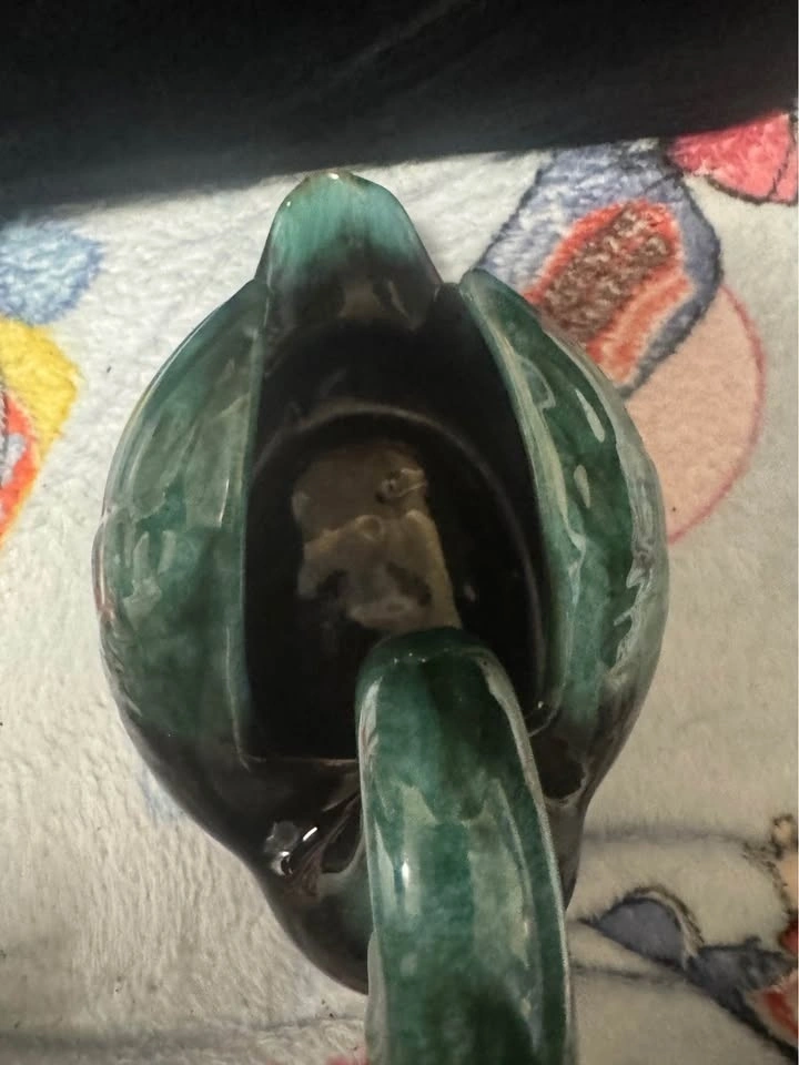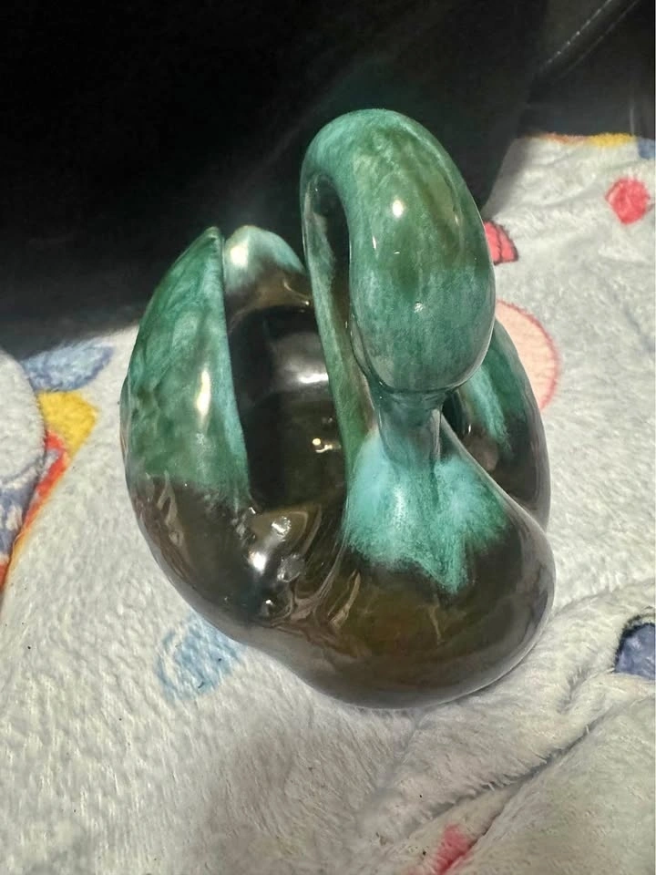 Beautiful Blue Mountain Pottery swan. Ceramic piece with cool green and brown glaze. Made in Canada, has the original sticker on the bottom. Great for decor or as a small planter.