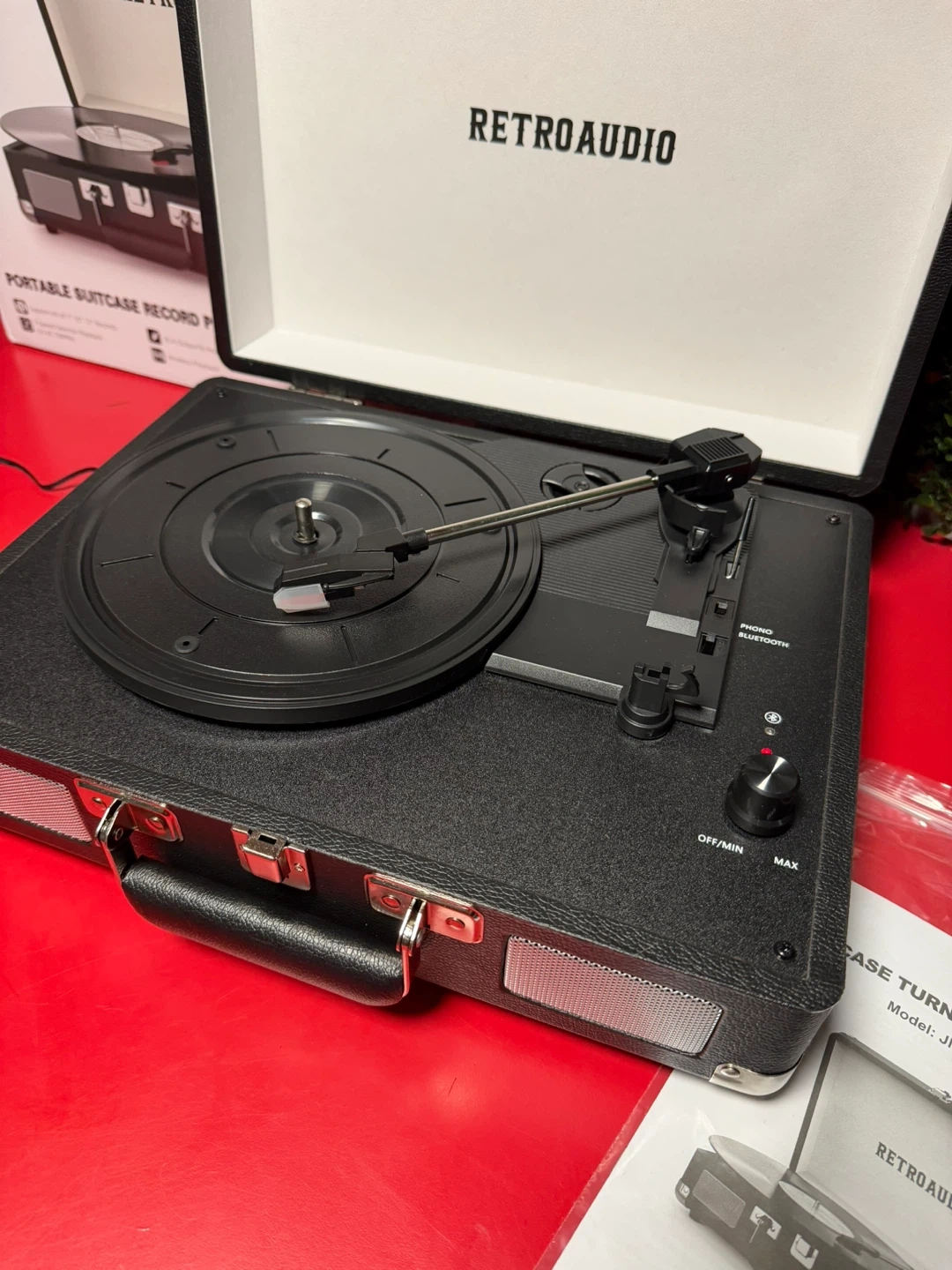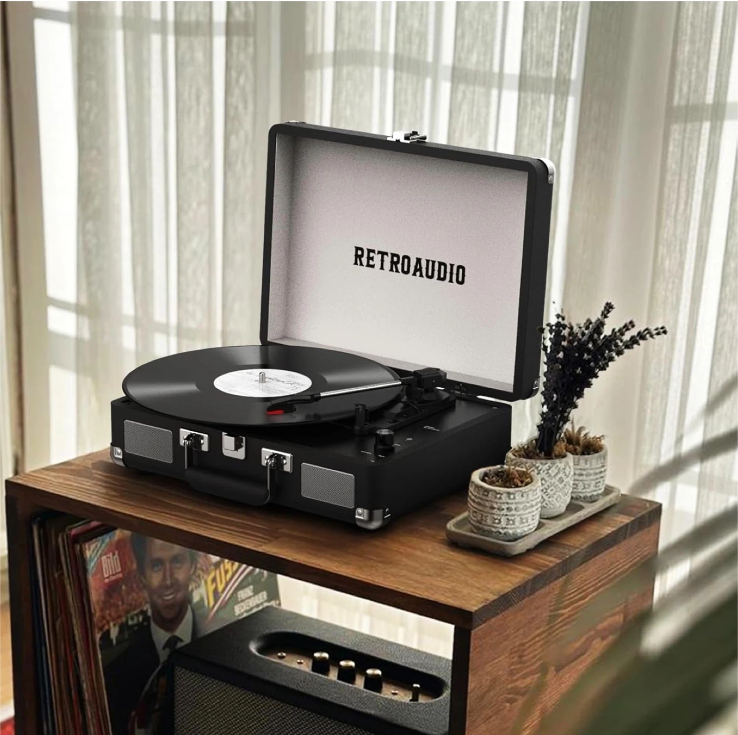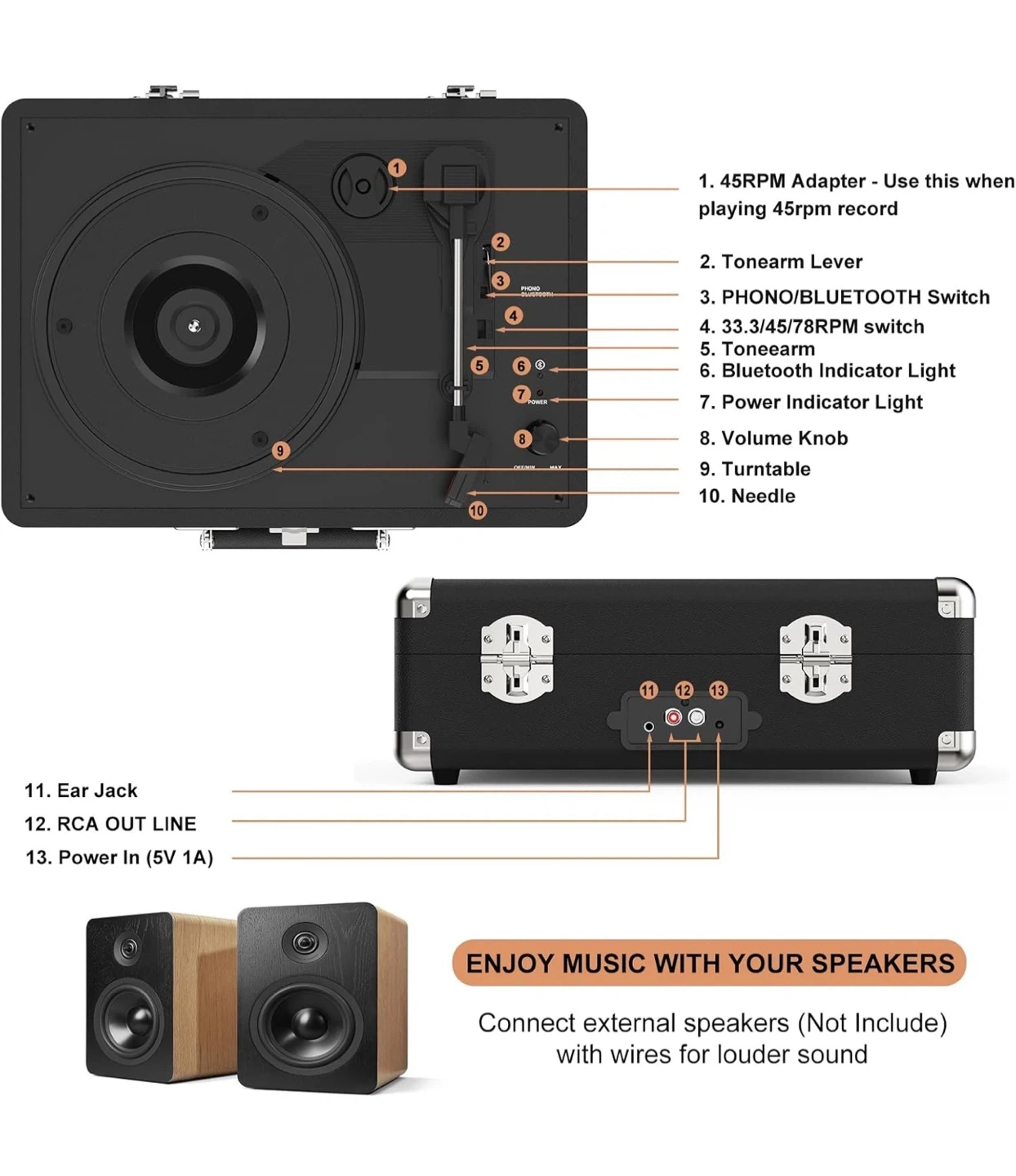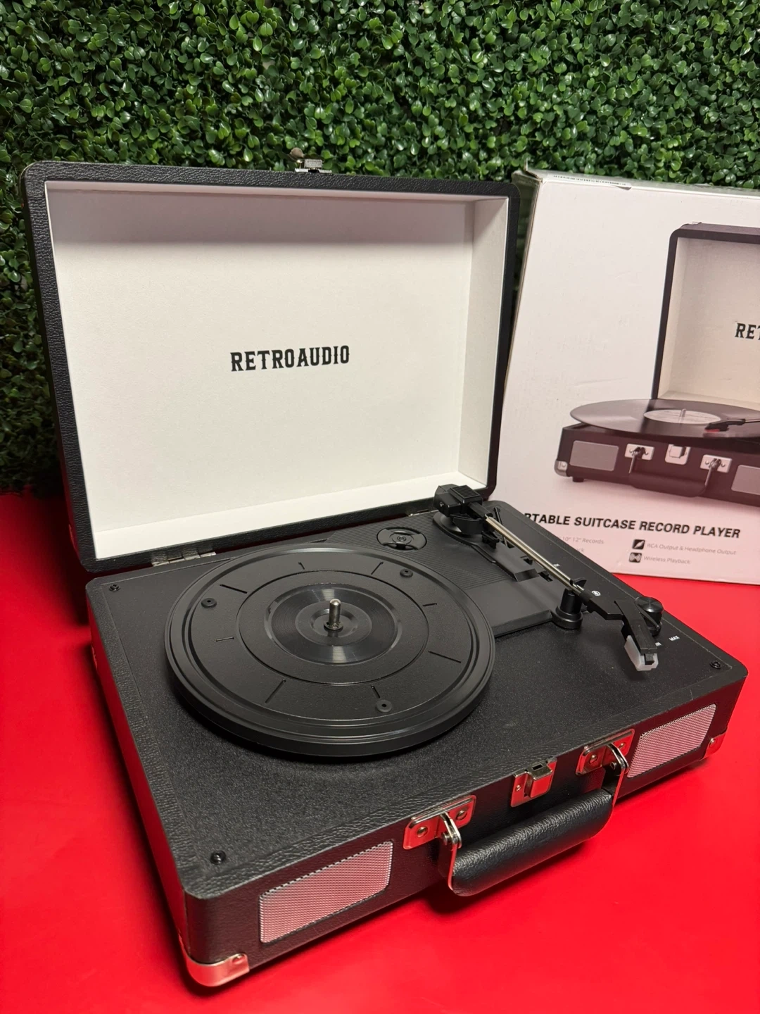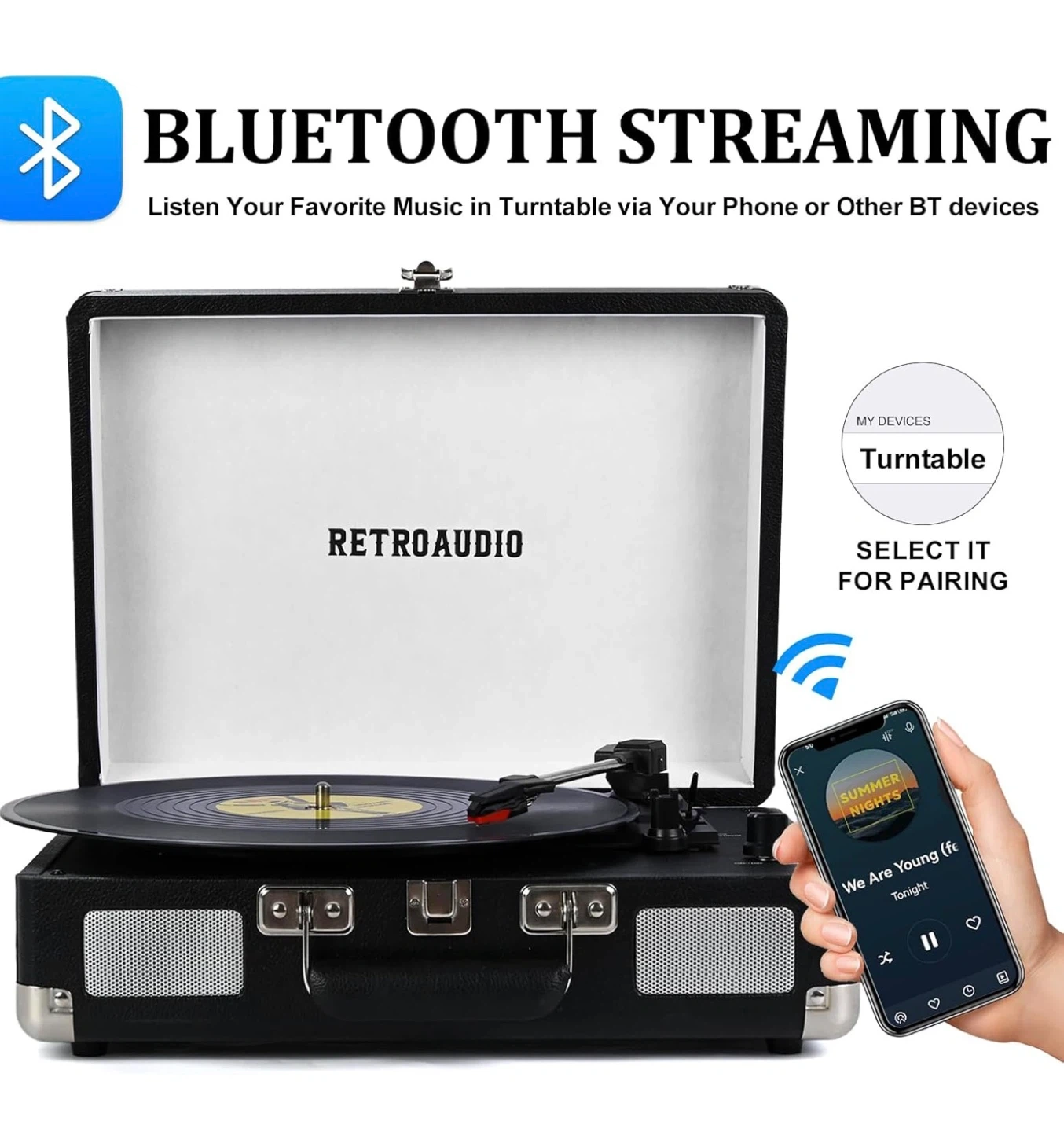 Vinyl Record Player 3-Speed Bluetooth Portable Suitcase Belt-Driven Record Player with 2 Built-in Stereo Speakers Vinyl Vintage Turntable Phonograph with RCA Line Out, AUX Out.