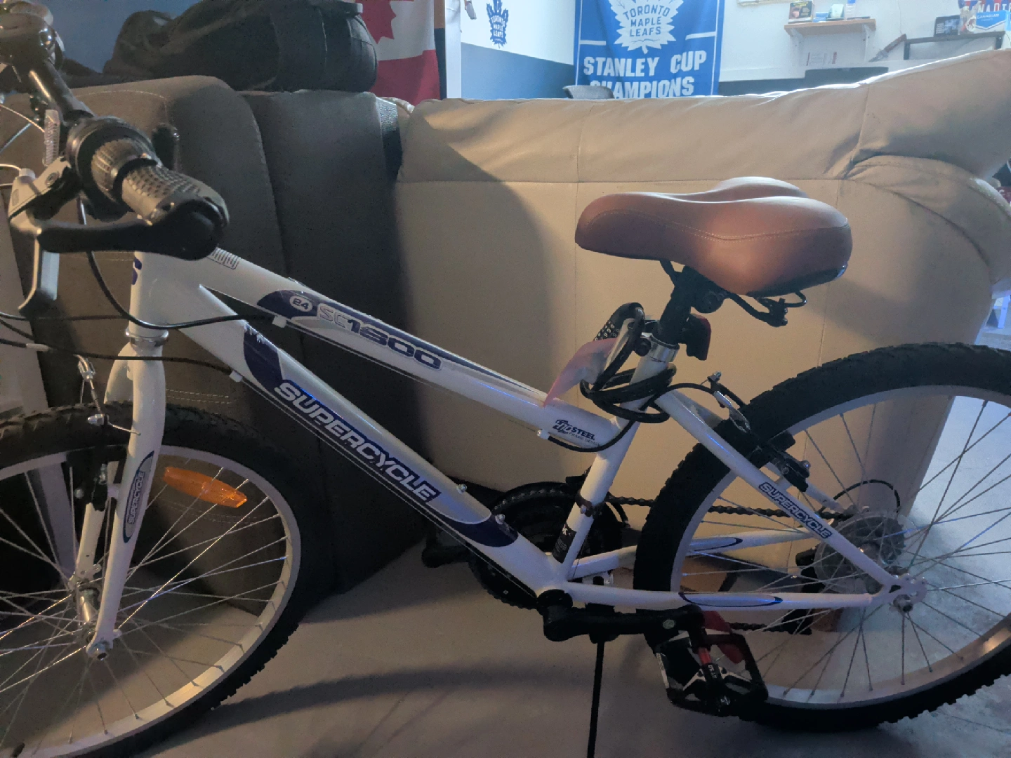 Selling a Supercycle SC1800 bicycle frame. It features a Hi-Steel 24" frame. Upgraded steel peddles and seat. Also included original seat, lock and bell. Used 1 time and has been inside since last summer. No rust... well oiled bike.