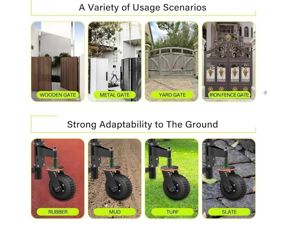 New in box. This is an 8-inch, heavy-duty fence gate wheel with a 600lb capacity. It's spring-loaded with a 360° swivel caster and shock absorption, suitable for wooden or metal gates. Black color. Pick up in Mississauga near Bloor and Dixie.