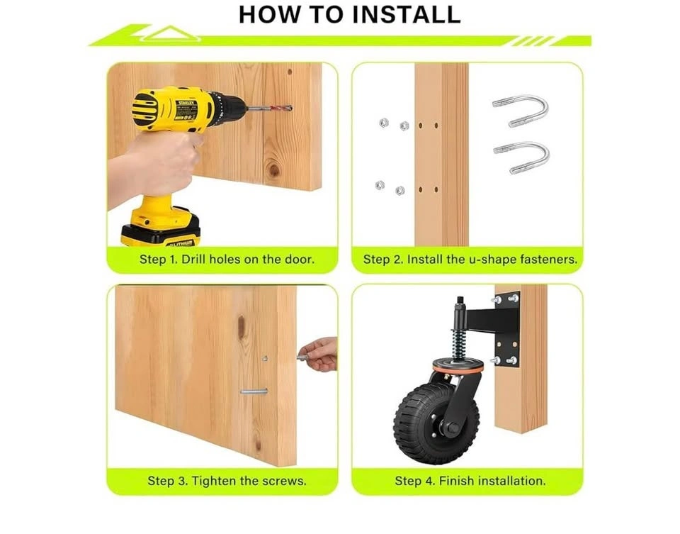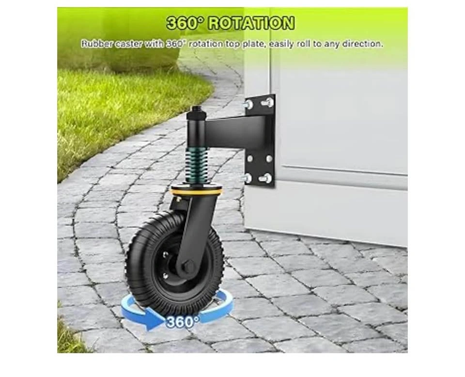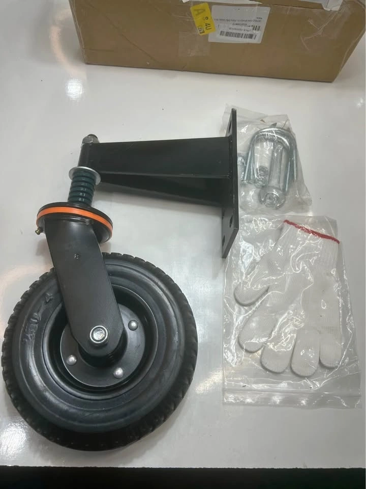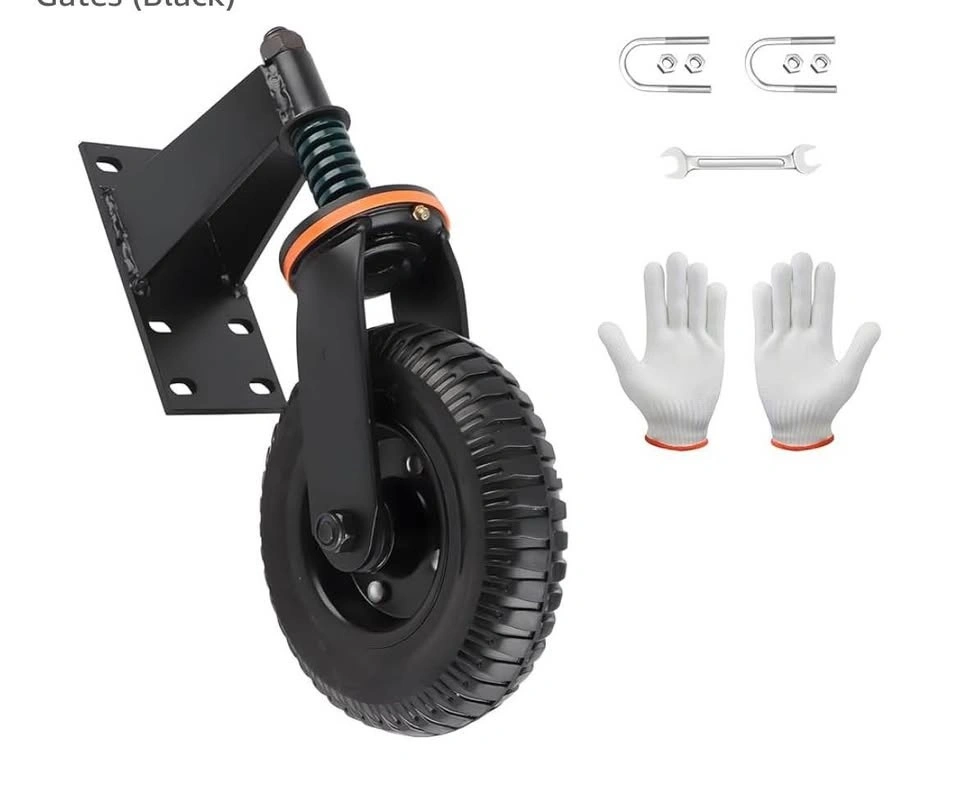 New in box. This is an 8-inch, heavy-duty fence gate wheel with a 600lb capacity. It's spring-loaded with a 360° swivel caster and shock absorption, suitable for wooden or metal gates. Black color. Pick up in Mississauga near Bloor and Dixie.