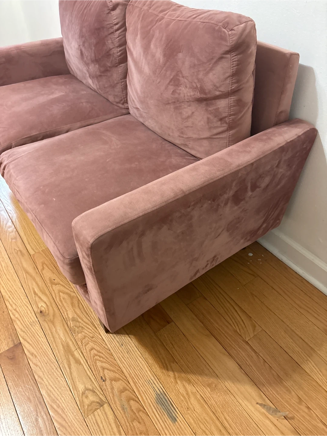 Pink rose couch good condition. Breaks into 4 pieces for easy moving. Garage pick up