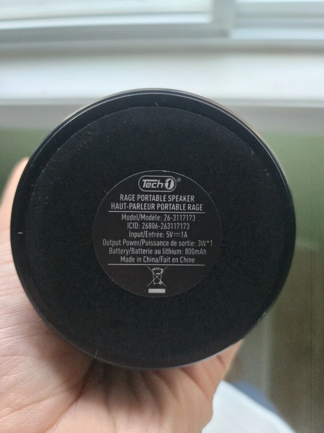 Black Tech Gear Rage portable speaker. Model Z6-3117173. It has an 800mAh battery. Great for music on the go!