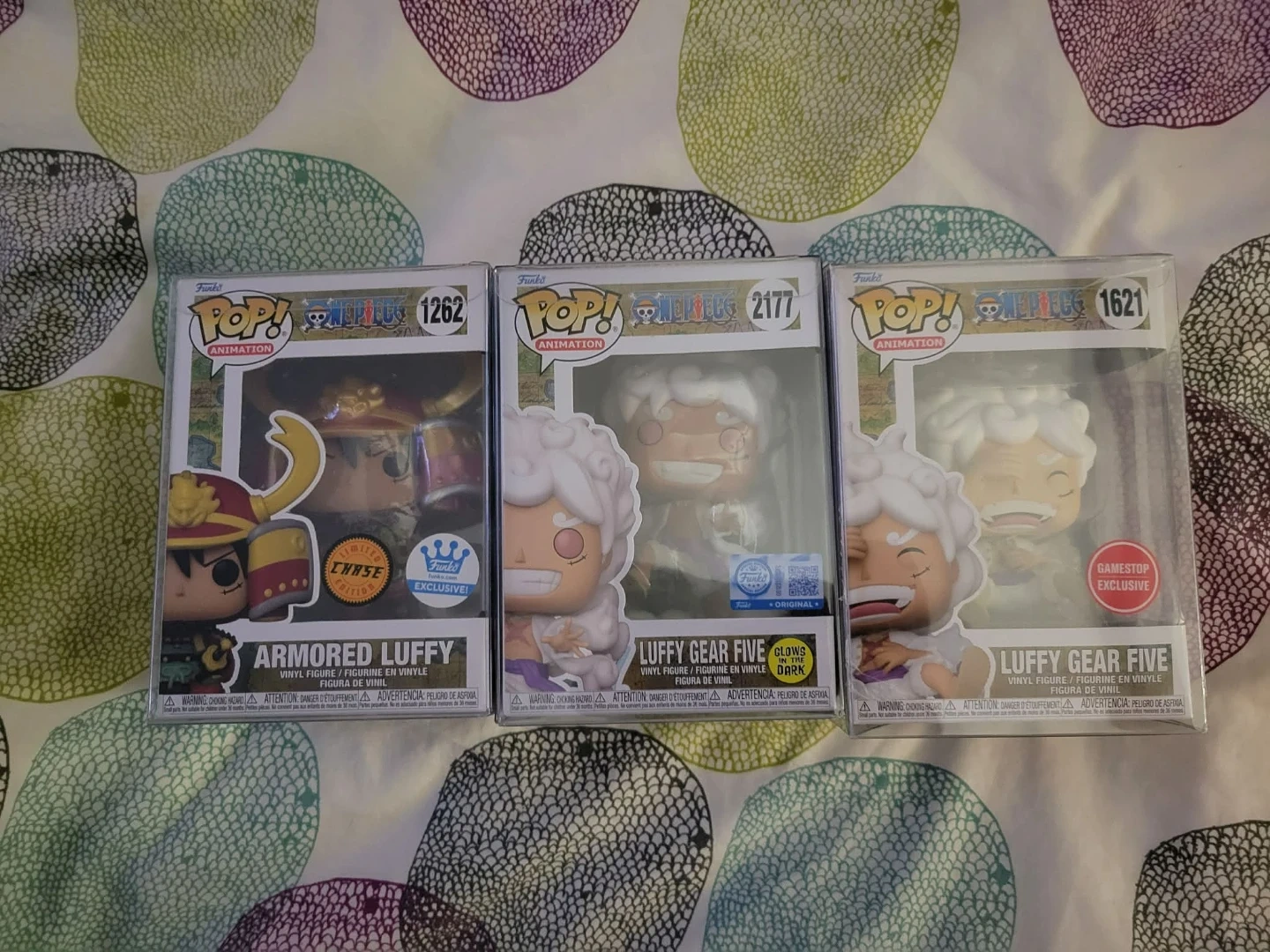 This listing includes various Funko Pop! Animation One Piece vinyl figures. Figures feature popular characters from the anime series. All figures are in their original boxes.