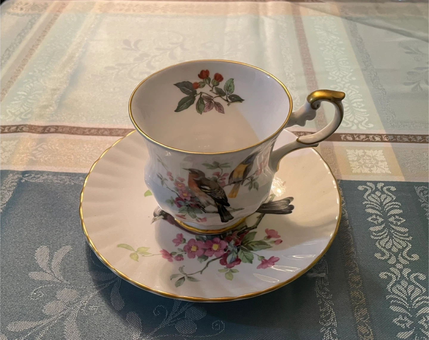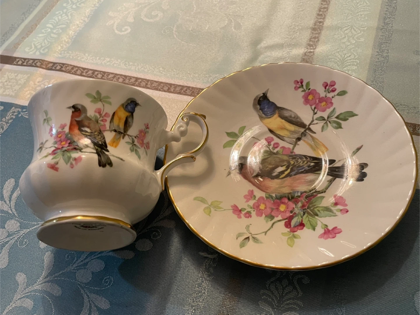 Buy & SellRosina Bone China Teacup and Saucer SetRosina Bone China Teacup and Saucer Set$17Beautiful Rosina bone china teacup and saucer set featuring lovely bird and floral designs. Gold trim accents the edges and handle. Made in England.ConditionLike newWHERE TO MEETThornhill Community CentreView MapSELLERverifiedMimiMarkham W48950 reviews0 chats·0 favorites·3 viewsSEND CHAT TO SELLERHi Mimi! I’m interested in your listing.Hi Mimi! I’m interested in your listing.Get the Karrot app to chatSign In to chat