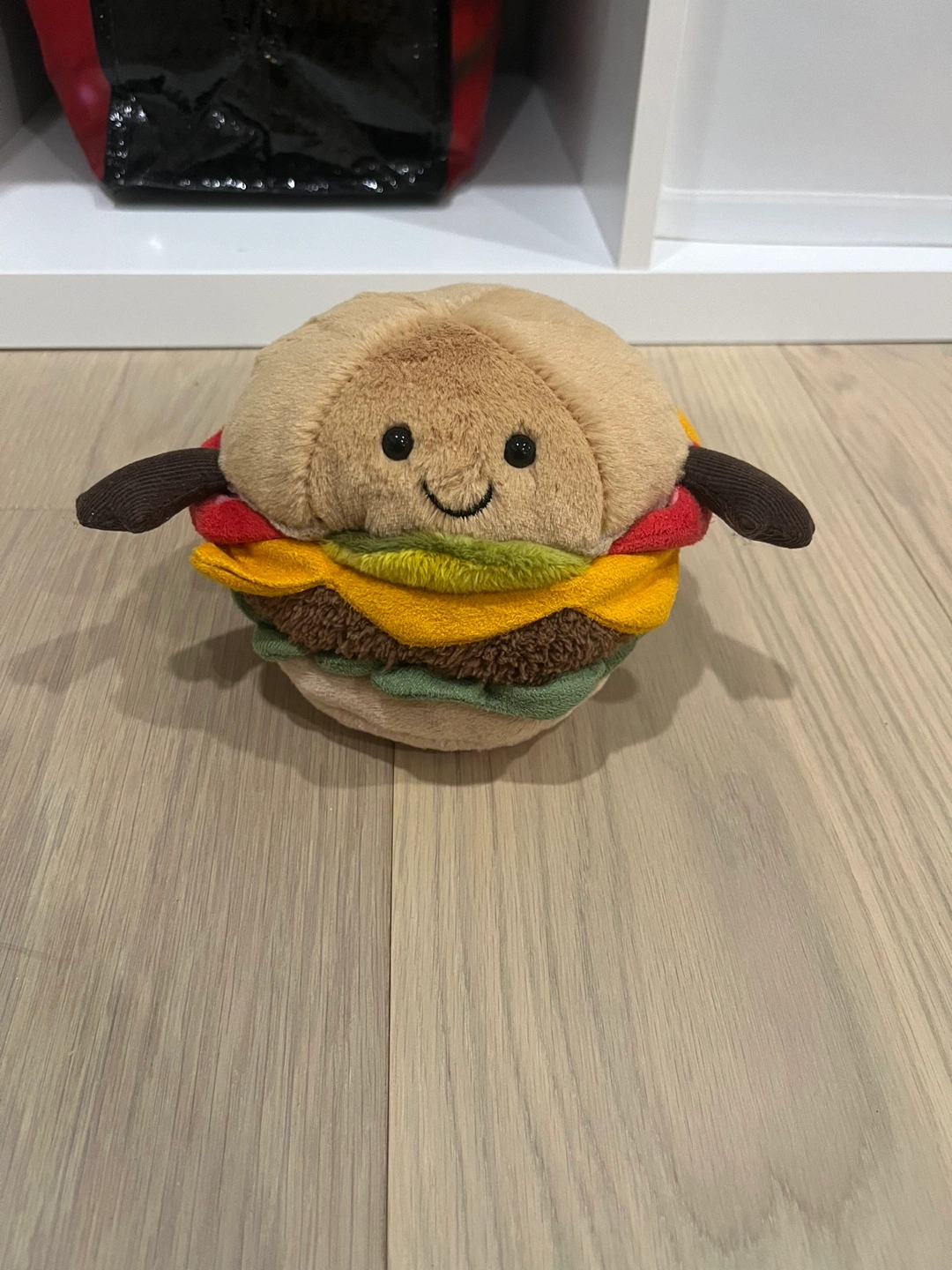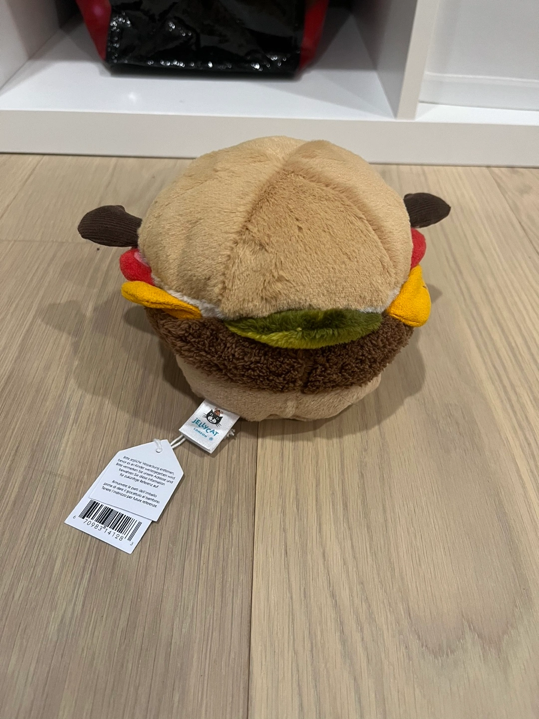 Buy & SellJellycat Burger PlushJellycat Burger Plush$25Plush burger toy. Small and collectible. Perfect for children or collectors. Soft and cuddly.WHERE TO MEETStarbucks RimrockView MapSELLERshnubsSheppard West12913 reviews1 chats·1 favorites·22 viewsSEND CHAT TO SELLERHi shnubs! I’m interested in your listing.Hi shnubs! I’m interested in your listing.Get the Karrot app to chatSign In to chat