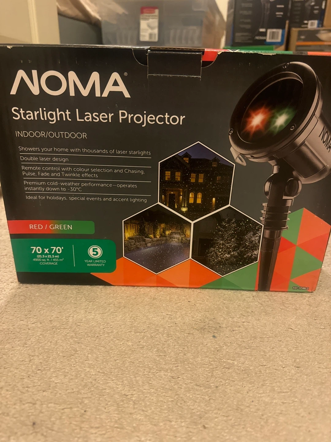 This NOMA Starlight Laser Projector showers your home with thousands of laser starlights. It features a double laser design with remote control for colour selection and chasing, pulse, fade, and twinkle effects. It's suitable for indoor or outdoor use and operates in cold weather down to -30°C.