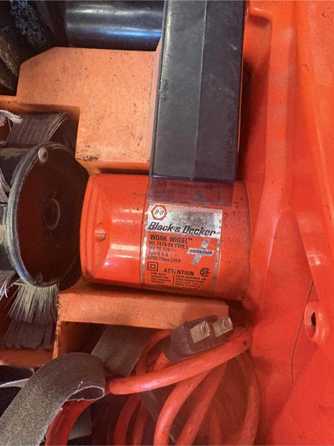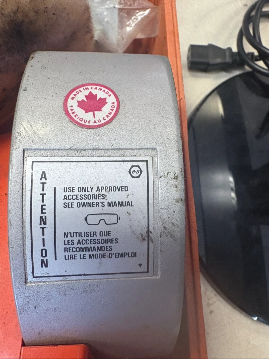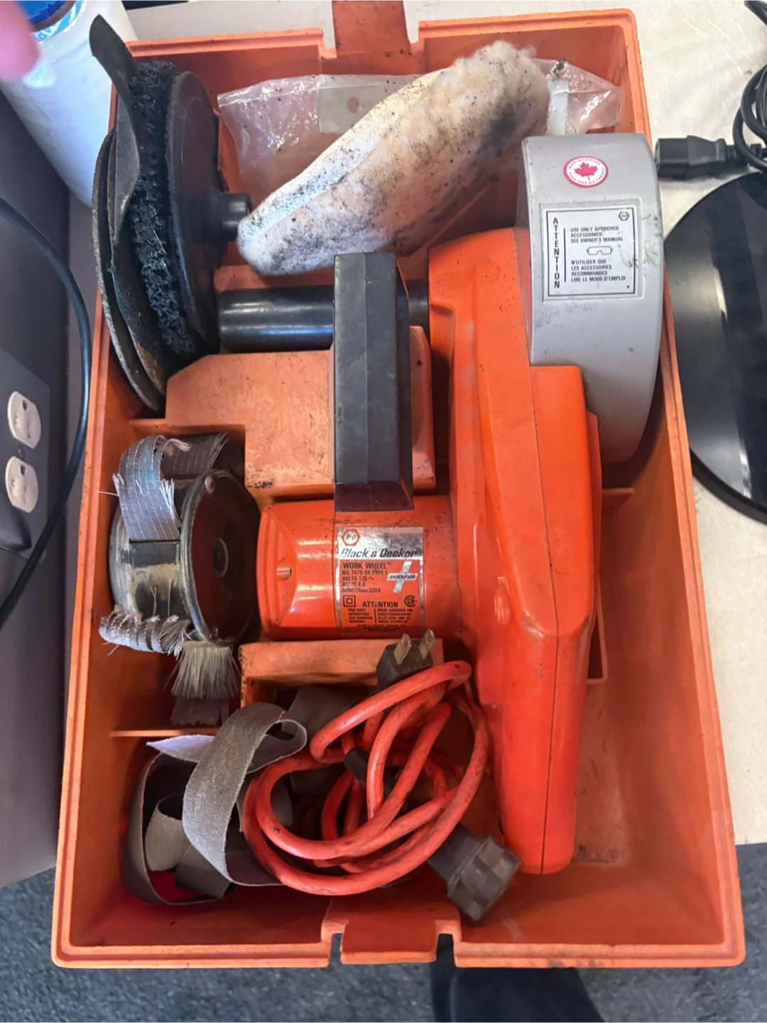 This is a Black & Decker Work Wheel kit. It's made in Canada and comes with various brushes and accessories. The unit has a model number of 7470-04 Type 1.