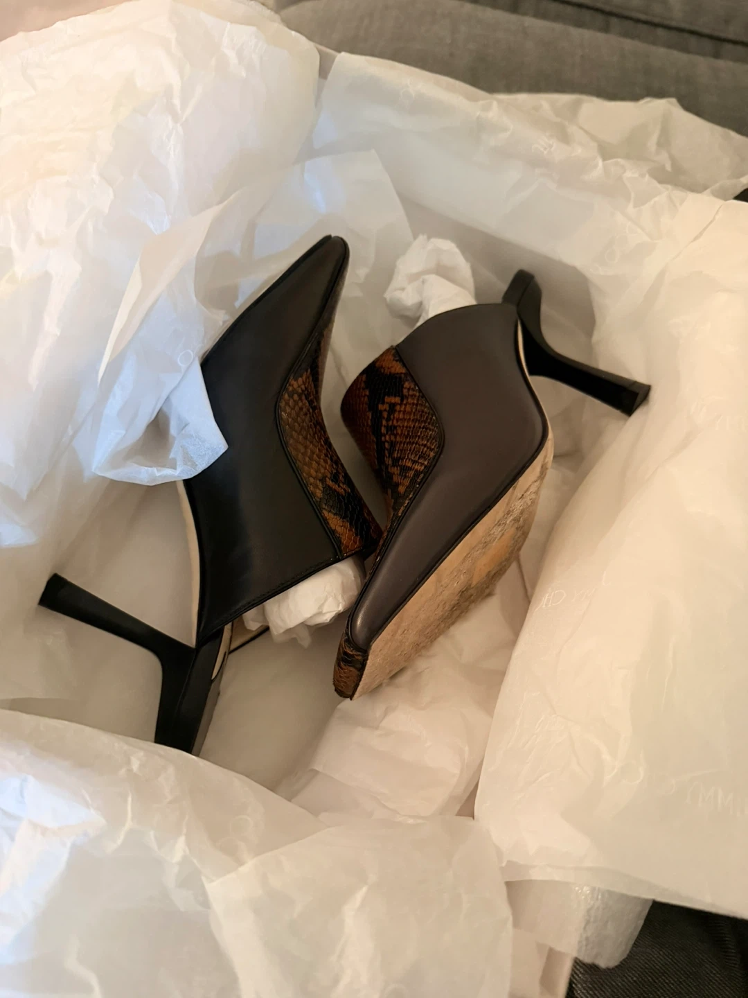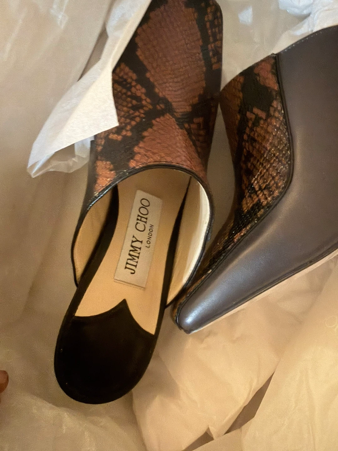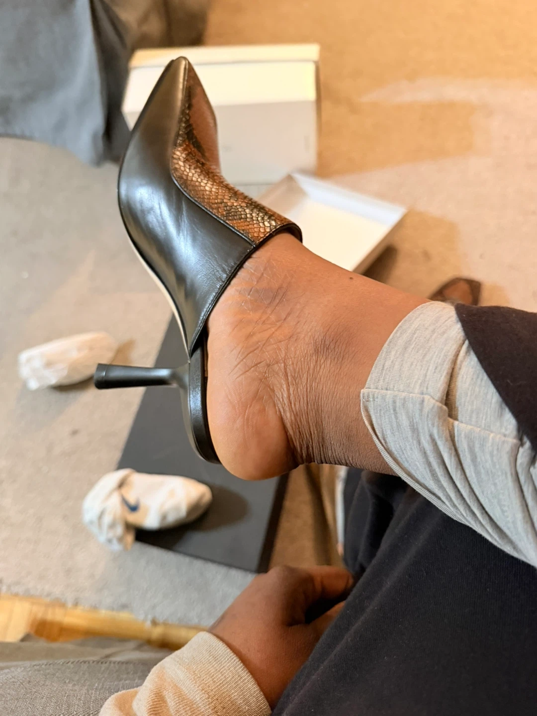 Worn once . Small chip at the front you can’t see. Size 5.5. Fits true to size. Too small for me. Comes with box