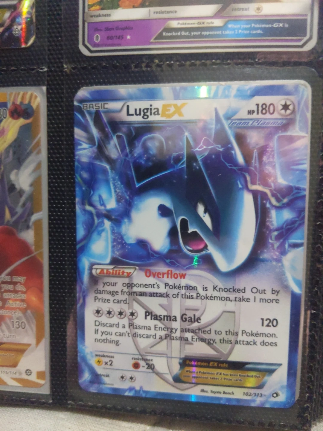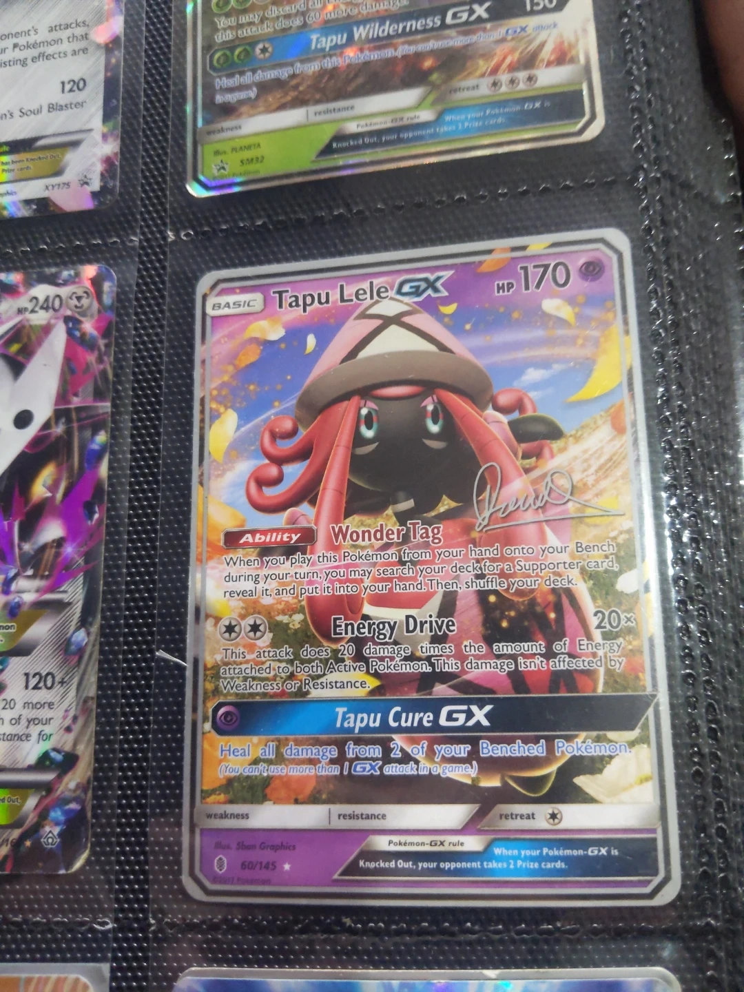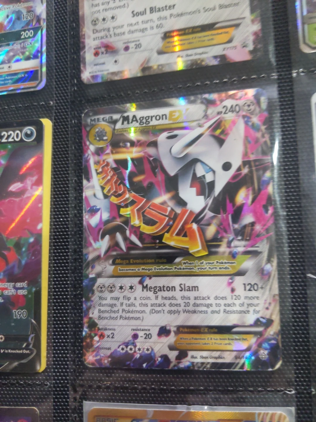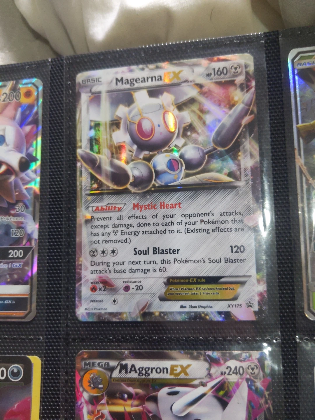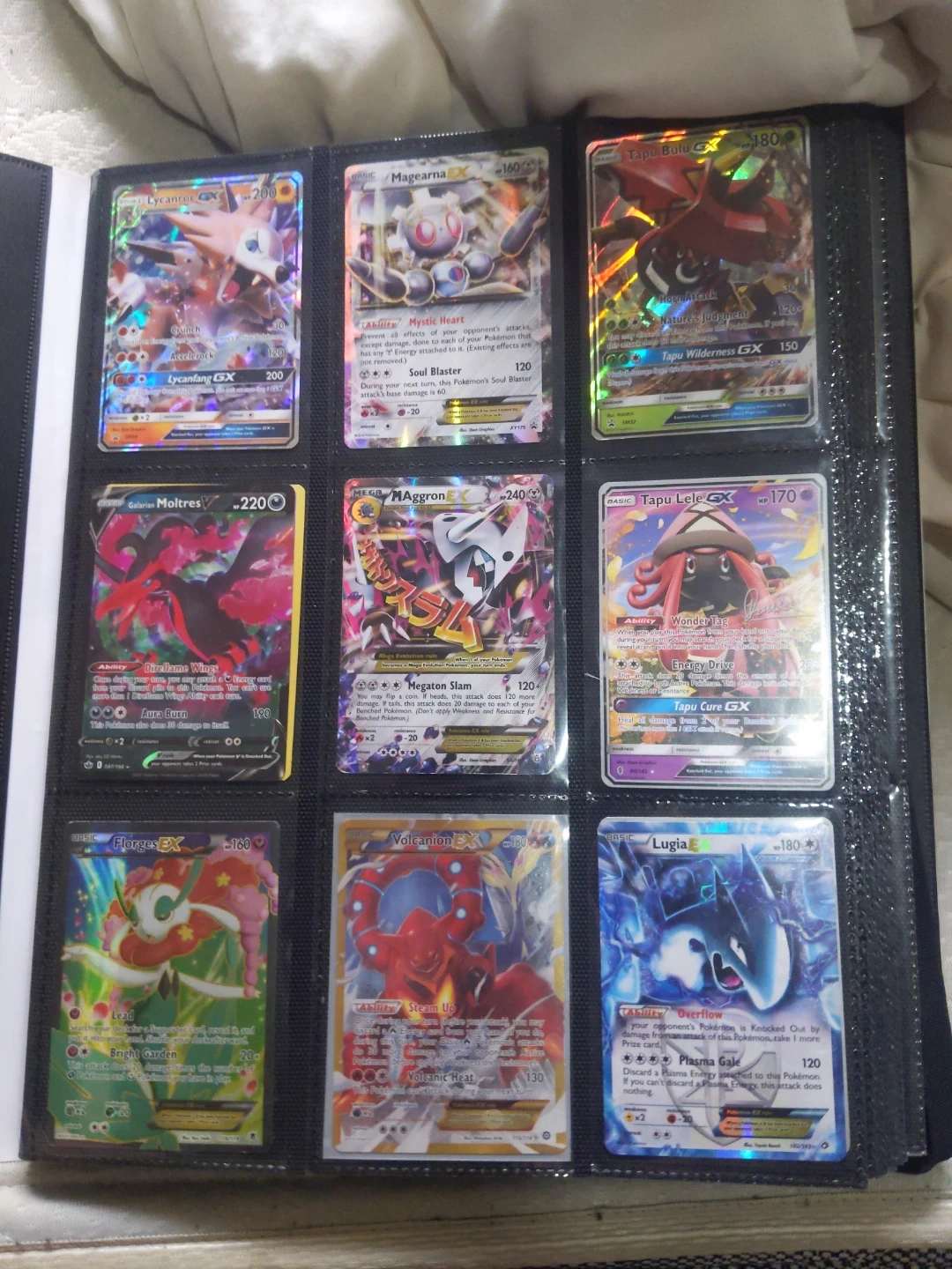 A collection of various Pokemon cards including Magearna EX, Galarian Moltres V, Tapu Bulu GX, and others.